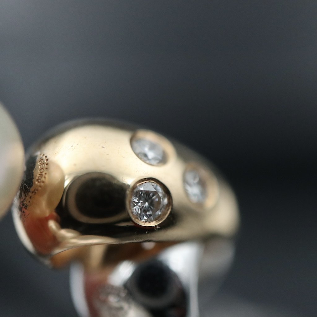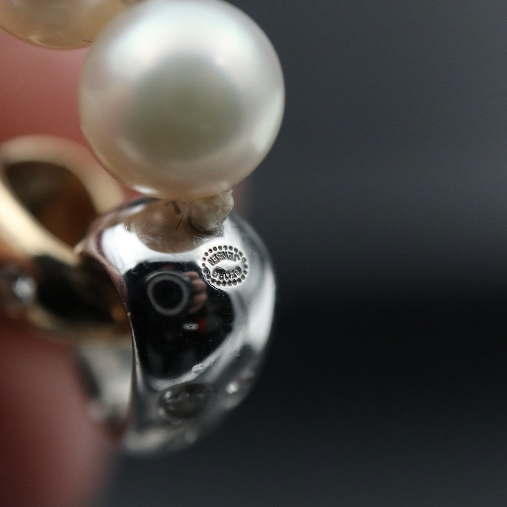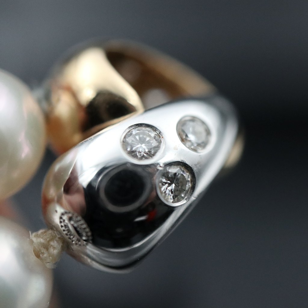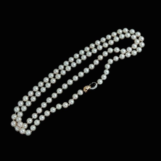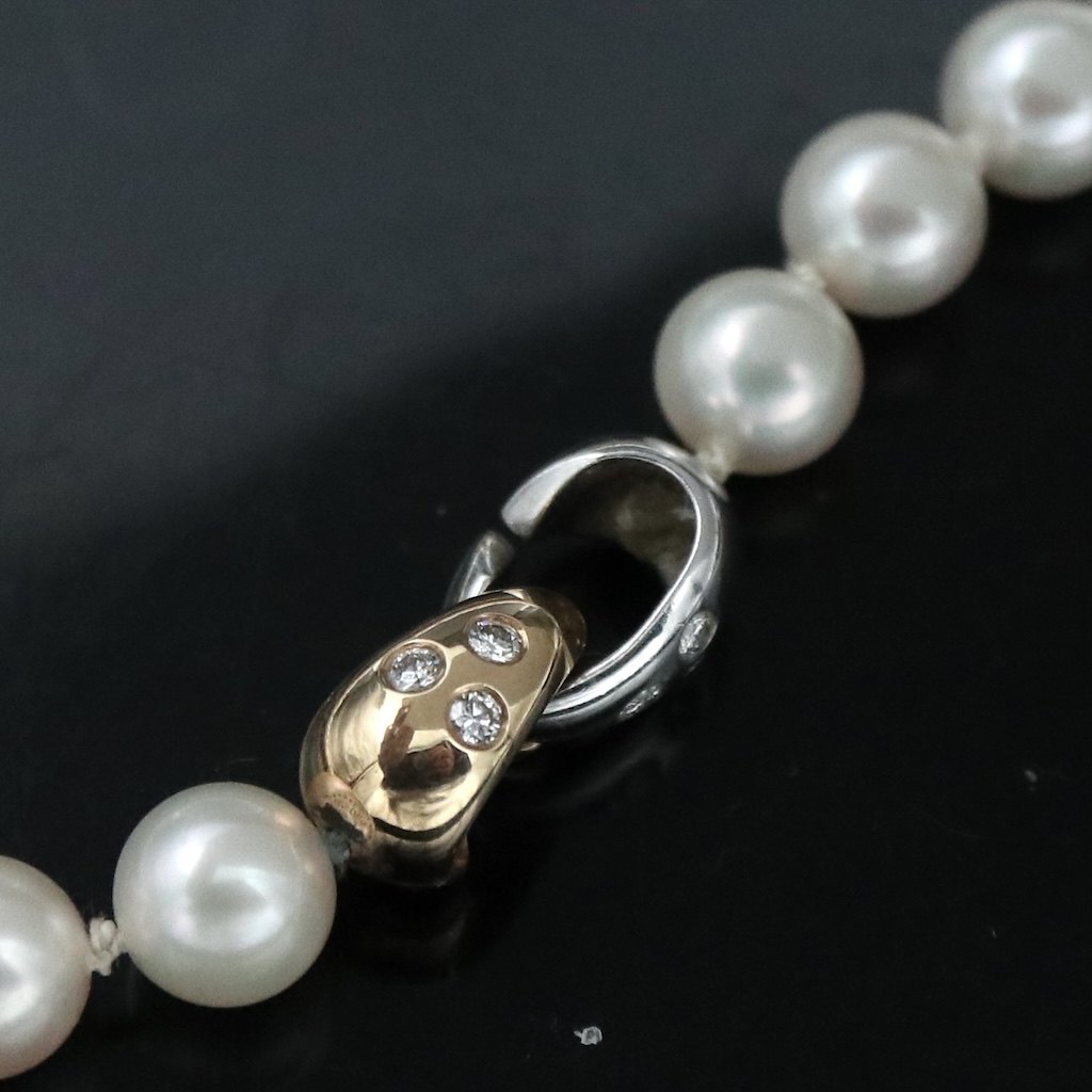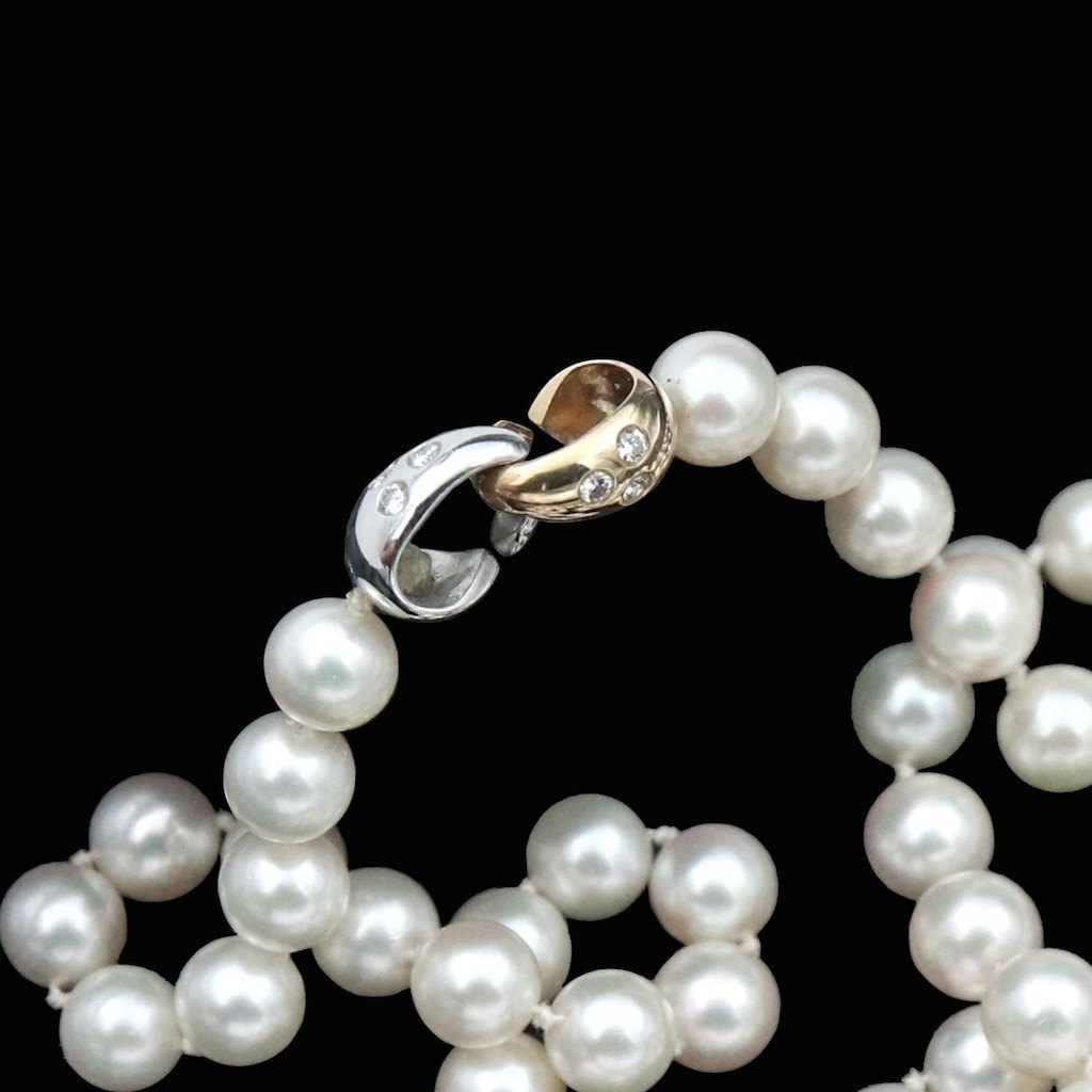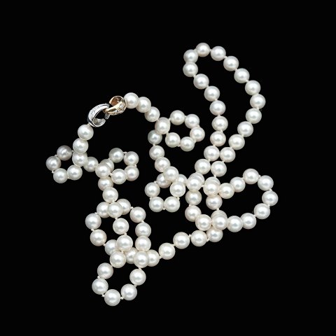 Georg Jensen. Unika Pearl Necklace with 18k White & Yellow Gold Diamond Clasp.