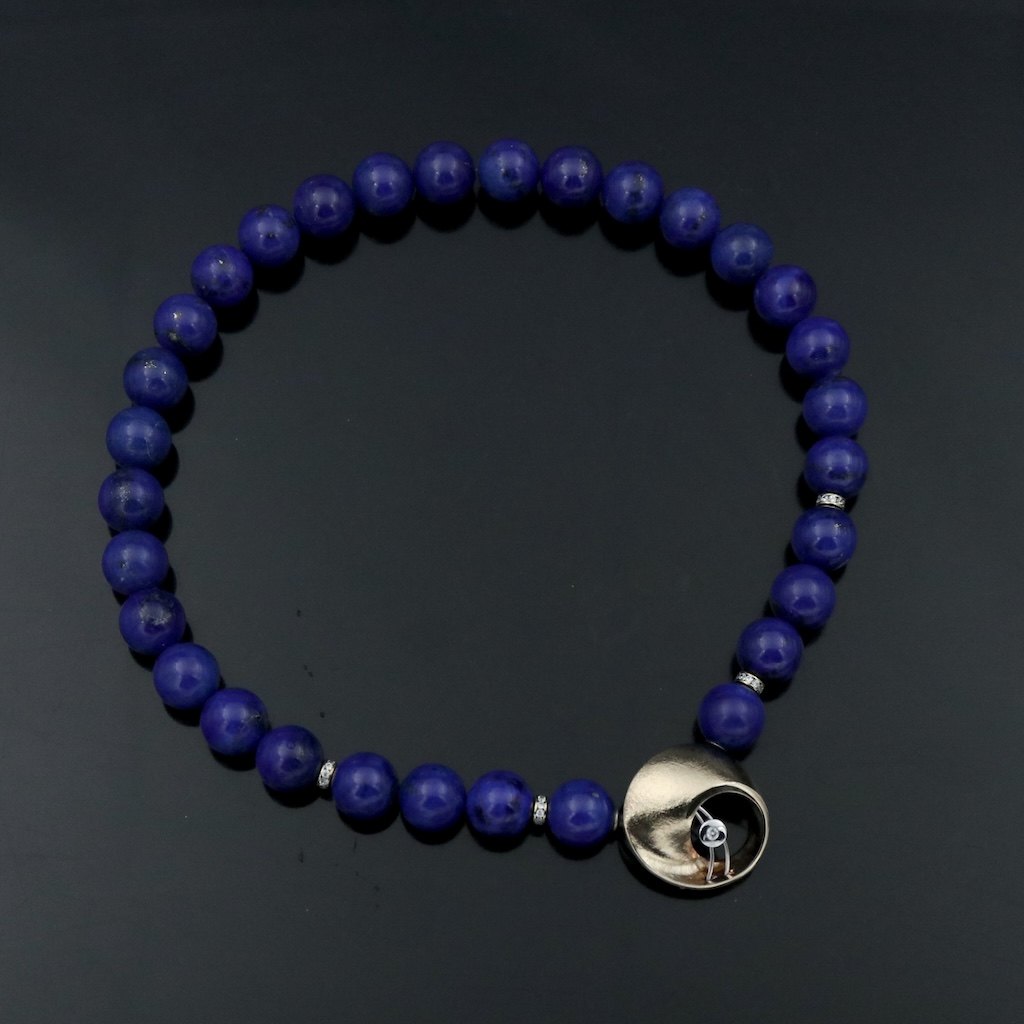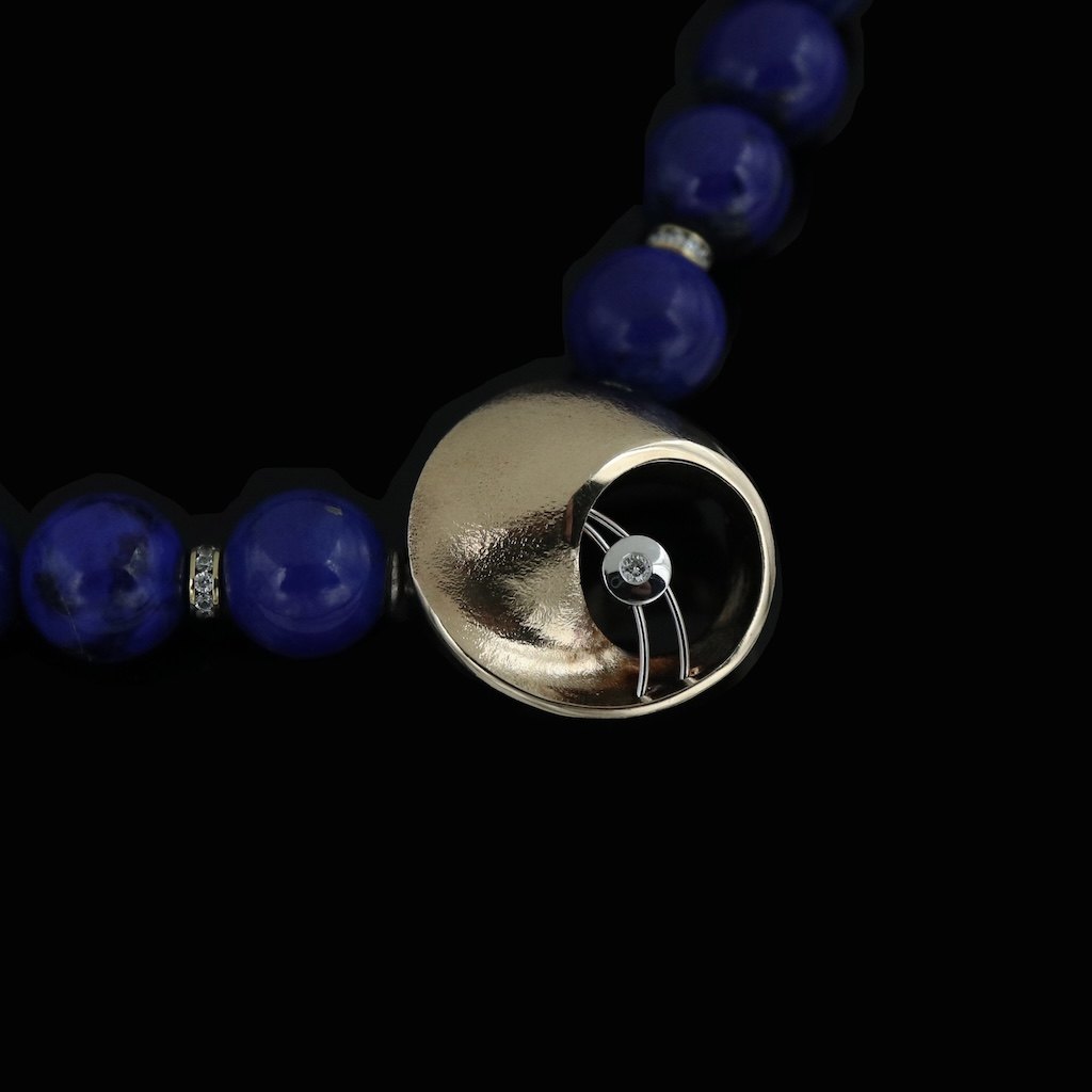 1,2 cm. Lapis Beads Necklace with four 14k gold and diamond rings.