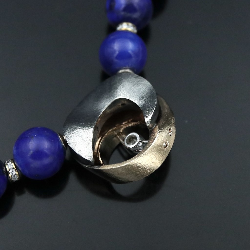 Lapis Lazuli Bead Necklace with Sterling Silver & 14k Gold Diamond Clasp.
