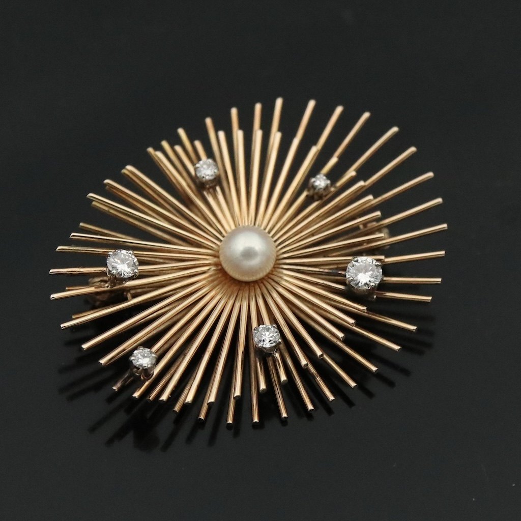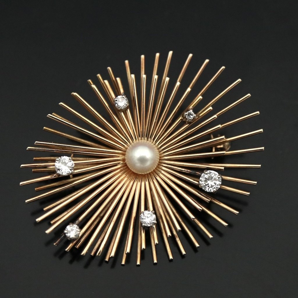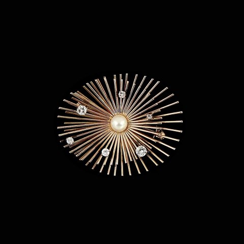 Viggo Wollny. 14k Gold Brooch with Diamonds. 13,4g.