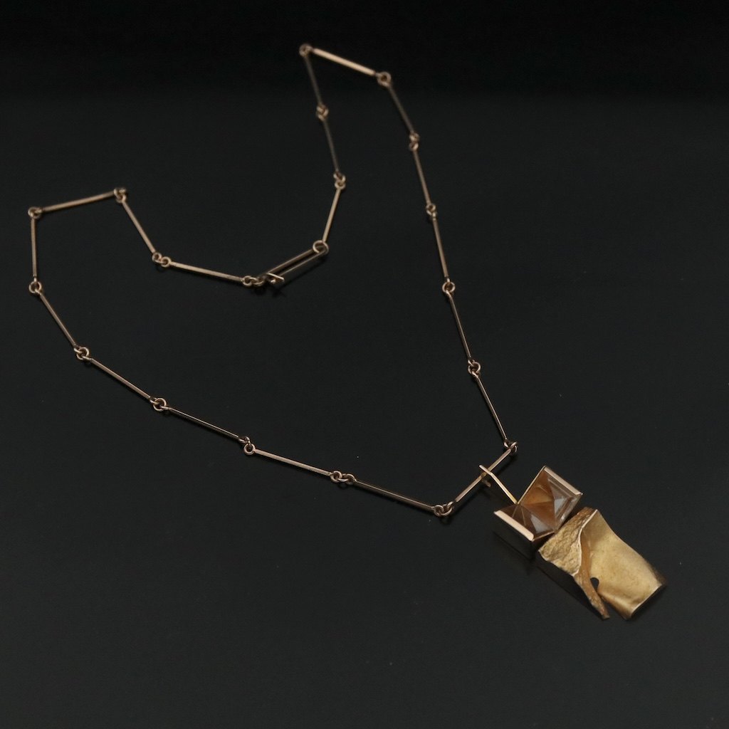 Lapponia. 14k Gold 'Narcissos' Necklace with Rock Crystal - Björn Weckström - 1969.