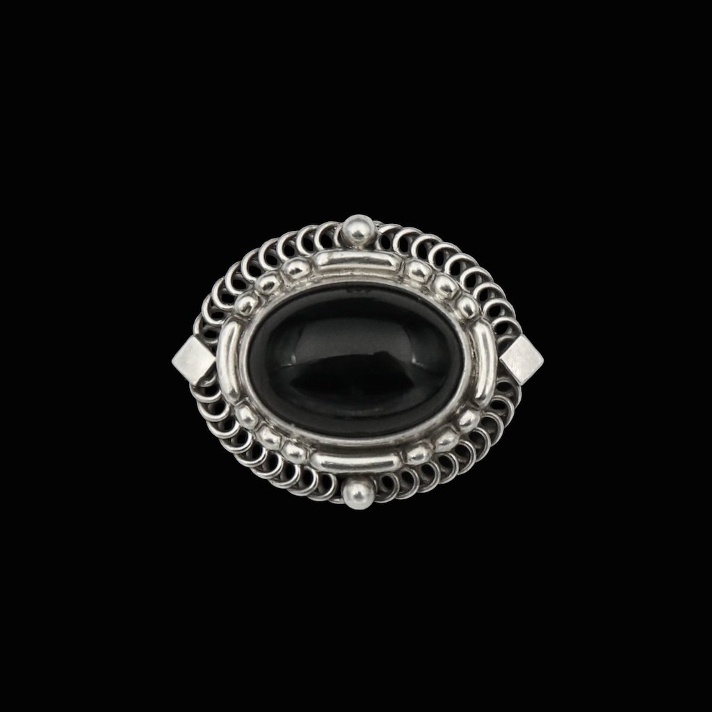 Georg Jensen. Sterling Silver Brooch with Cabochon Onyx #419.
