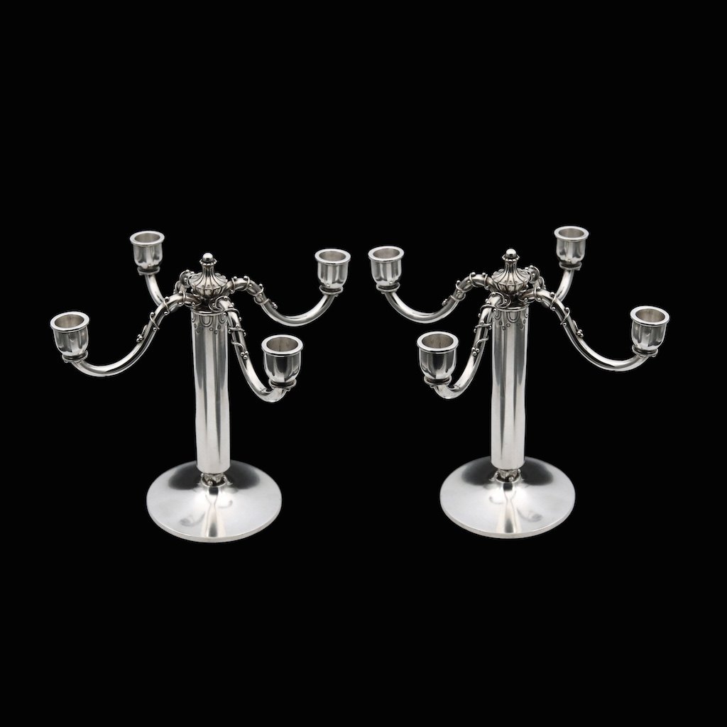 Peter Hertz - Copenhagen. A pair of Art deco Silver Four-Light Candelabra - 1931