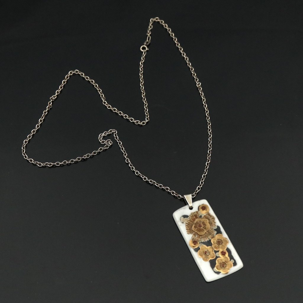 Royal Copenhagen. Sterling Silver Pendant with Porcelain.