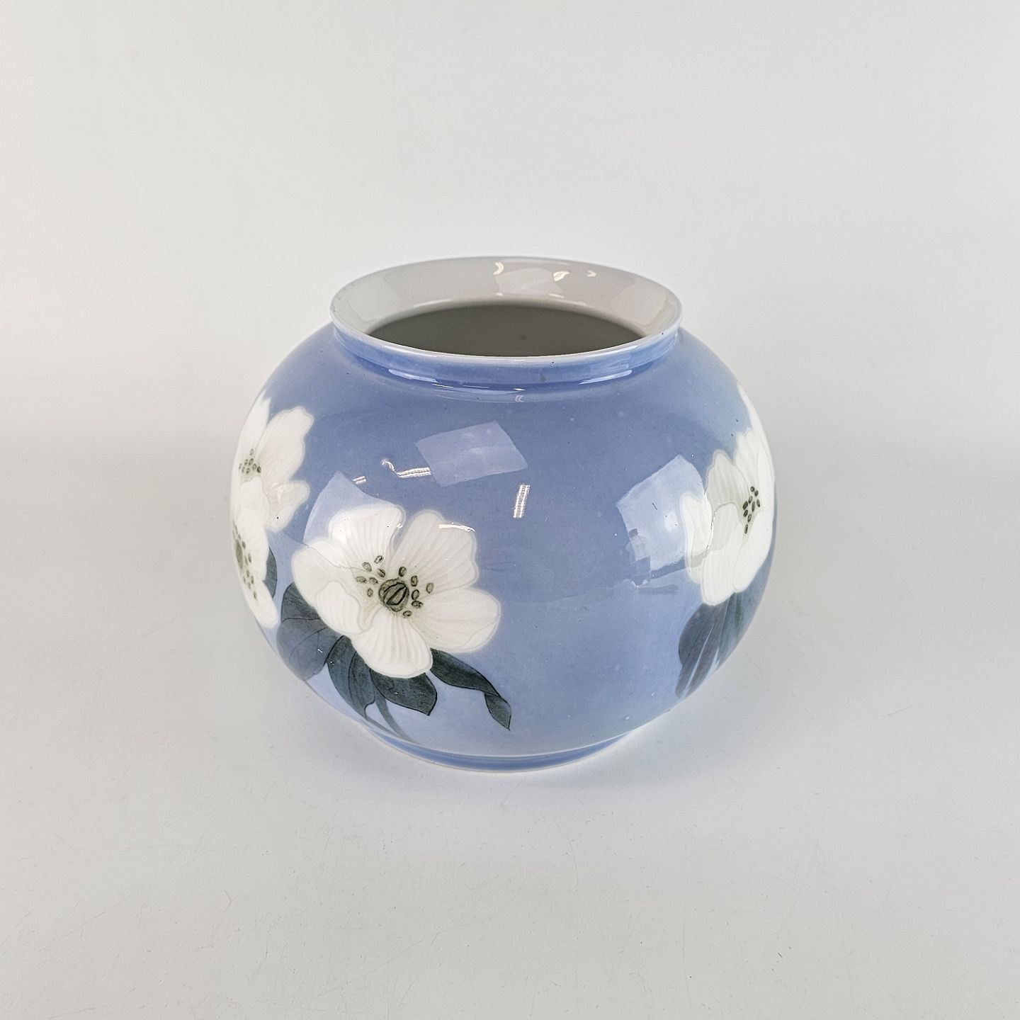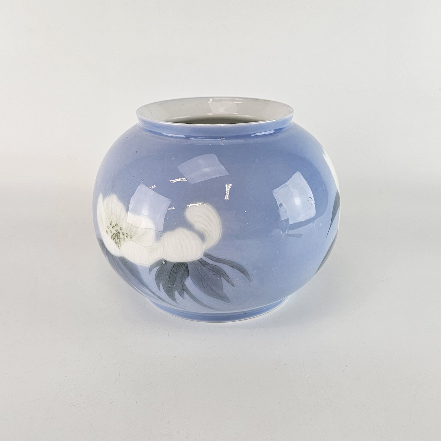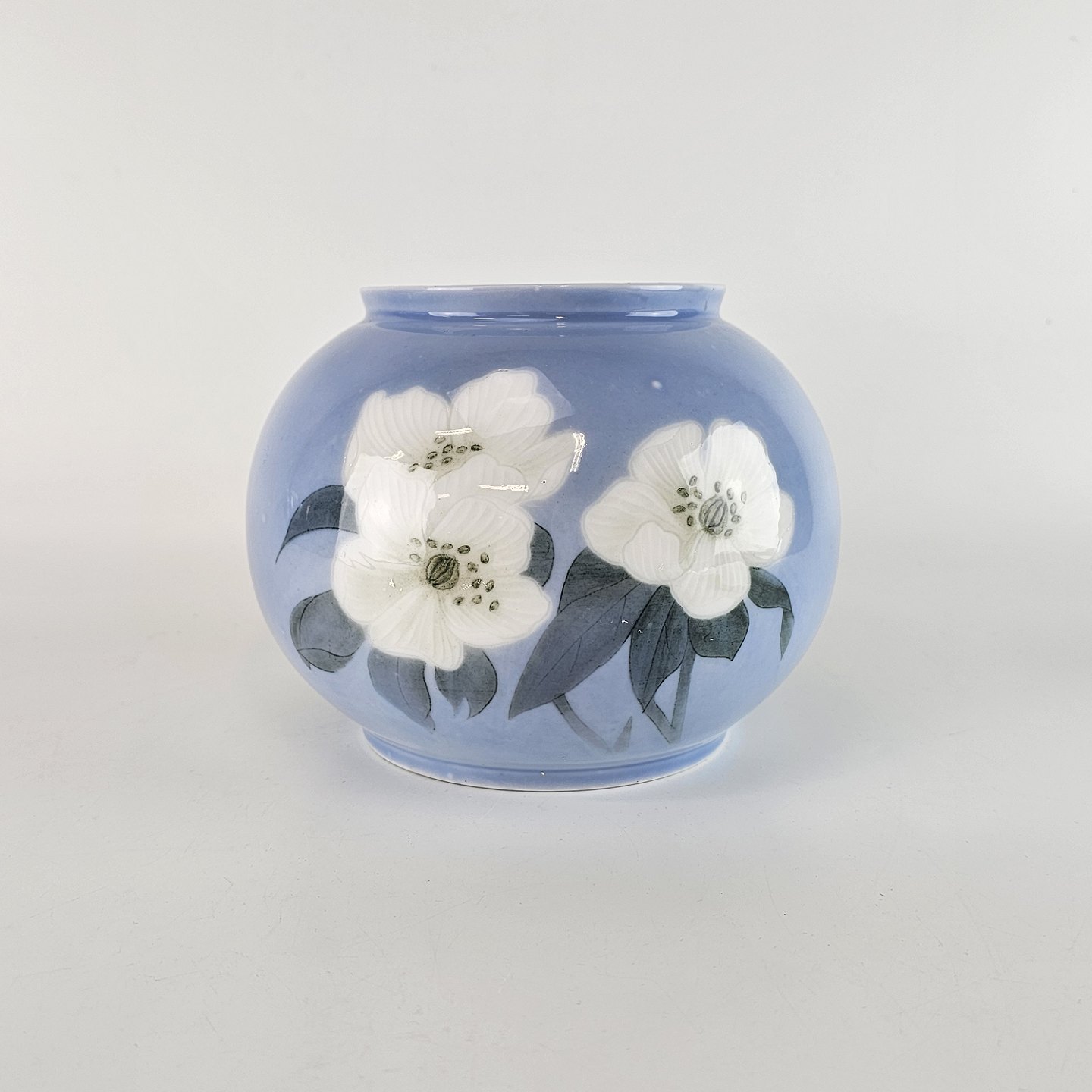 Vase i blå toner med hvide blomster. Julerose, Unika vase