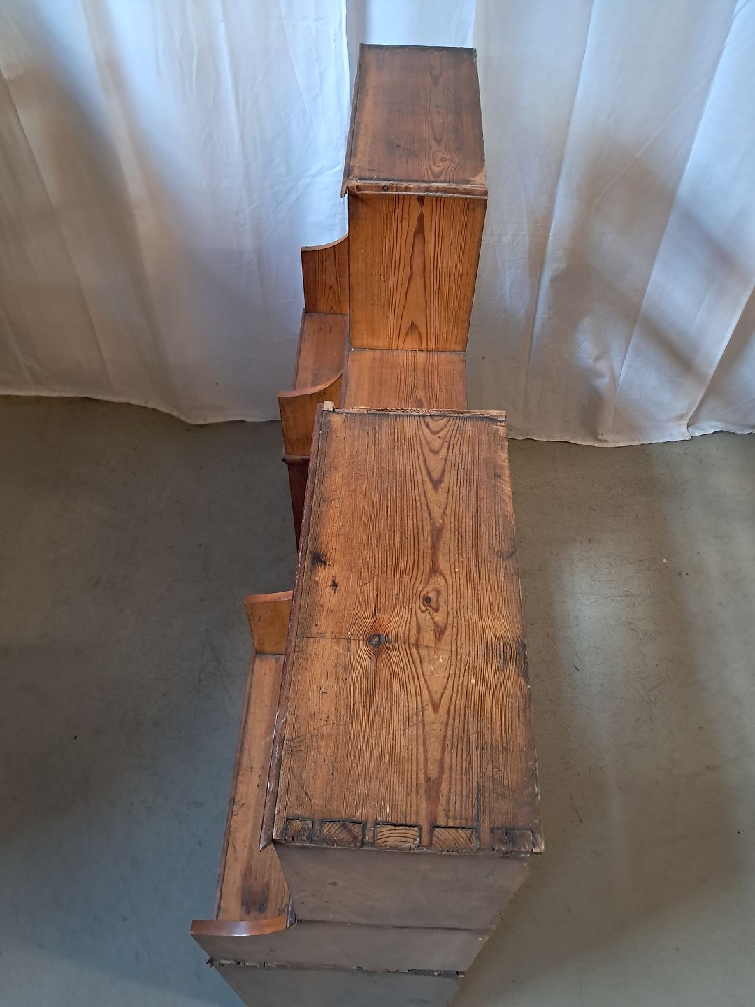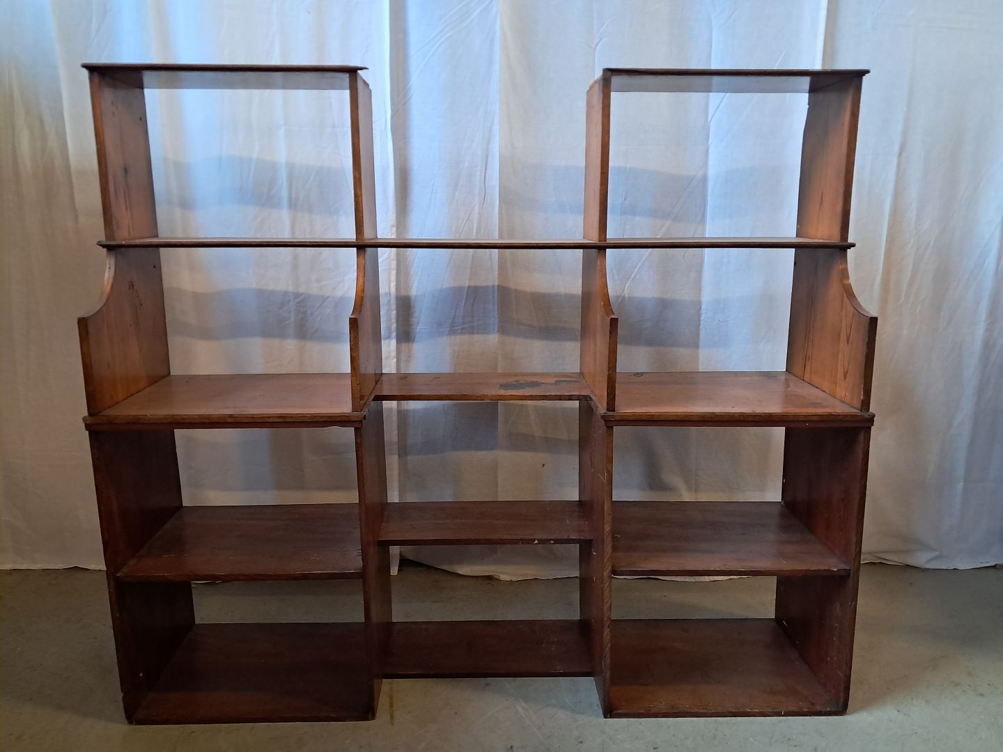 Reol i fineret mahogni og massivt fyrretræ, fra 1900erne.