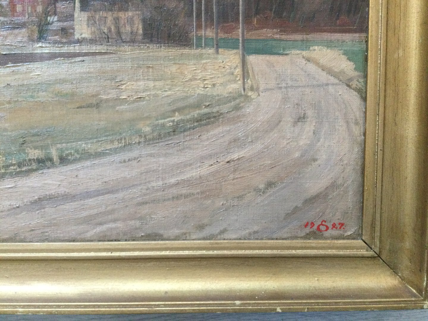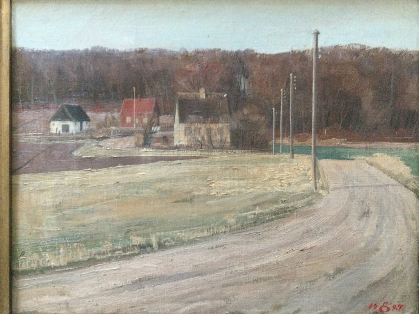 Text available in Danish: Maleri af Edvard Sarvig - Landsbygade 1927.