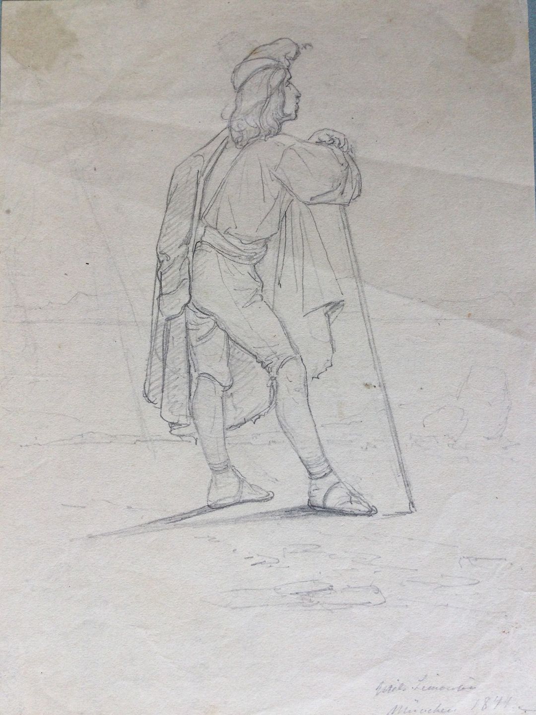 Text available in Danish: Tegning af Niels Simonsen - Stående arabisk mand 1844.