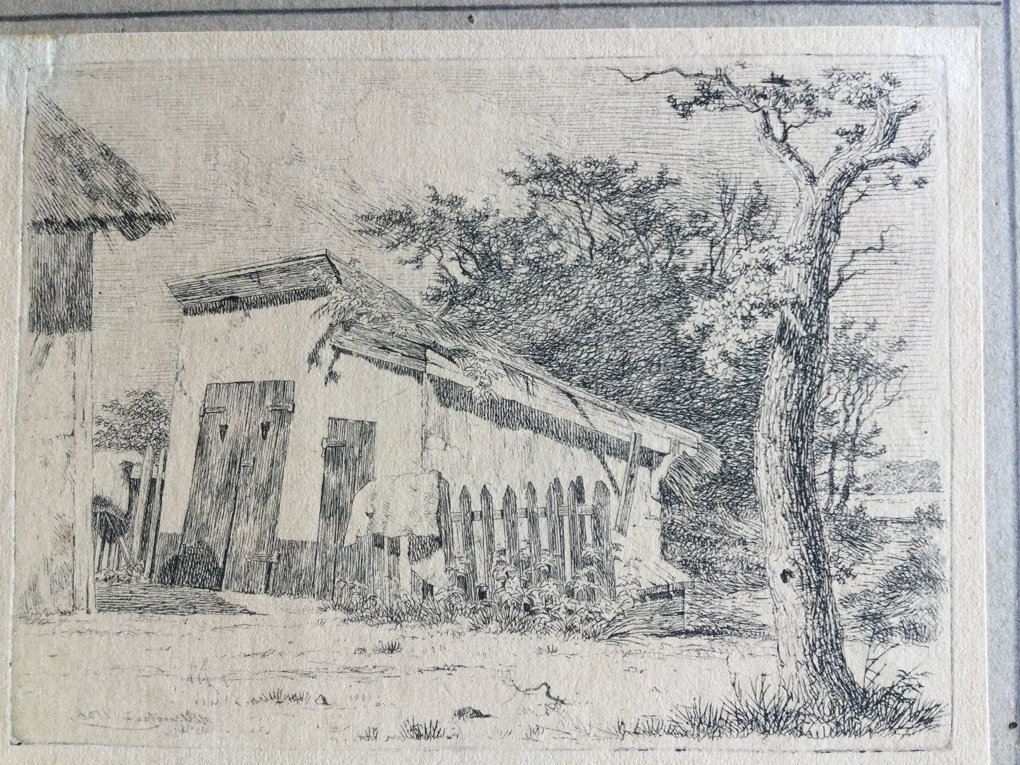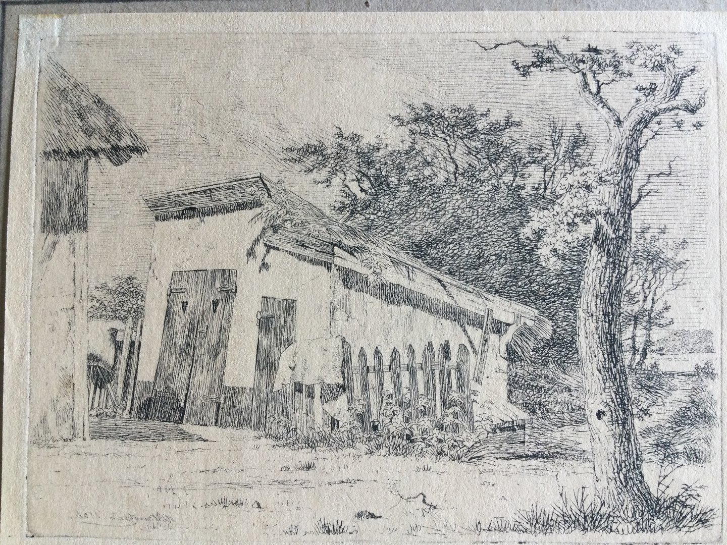Text available in Danish: Radering af Heinrich Buntzen (1803-92) - Landskab med træ og bygning 1836.