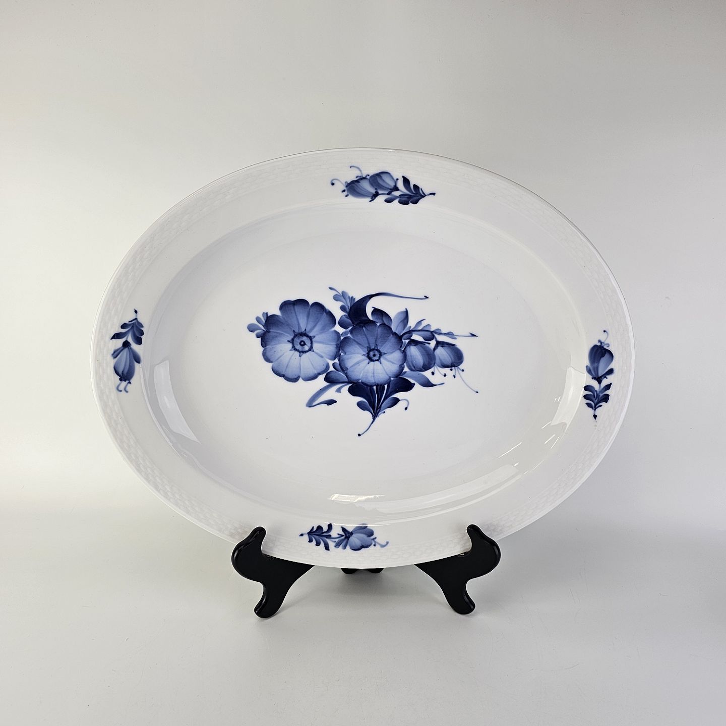 Stort ovalt fad i porcelæn fra stellet Blå Blomst Flettet. Nr 10/8018