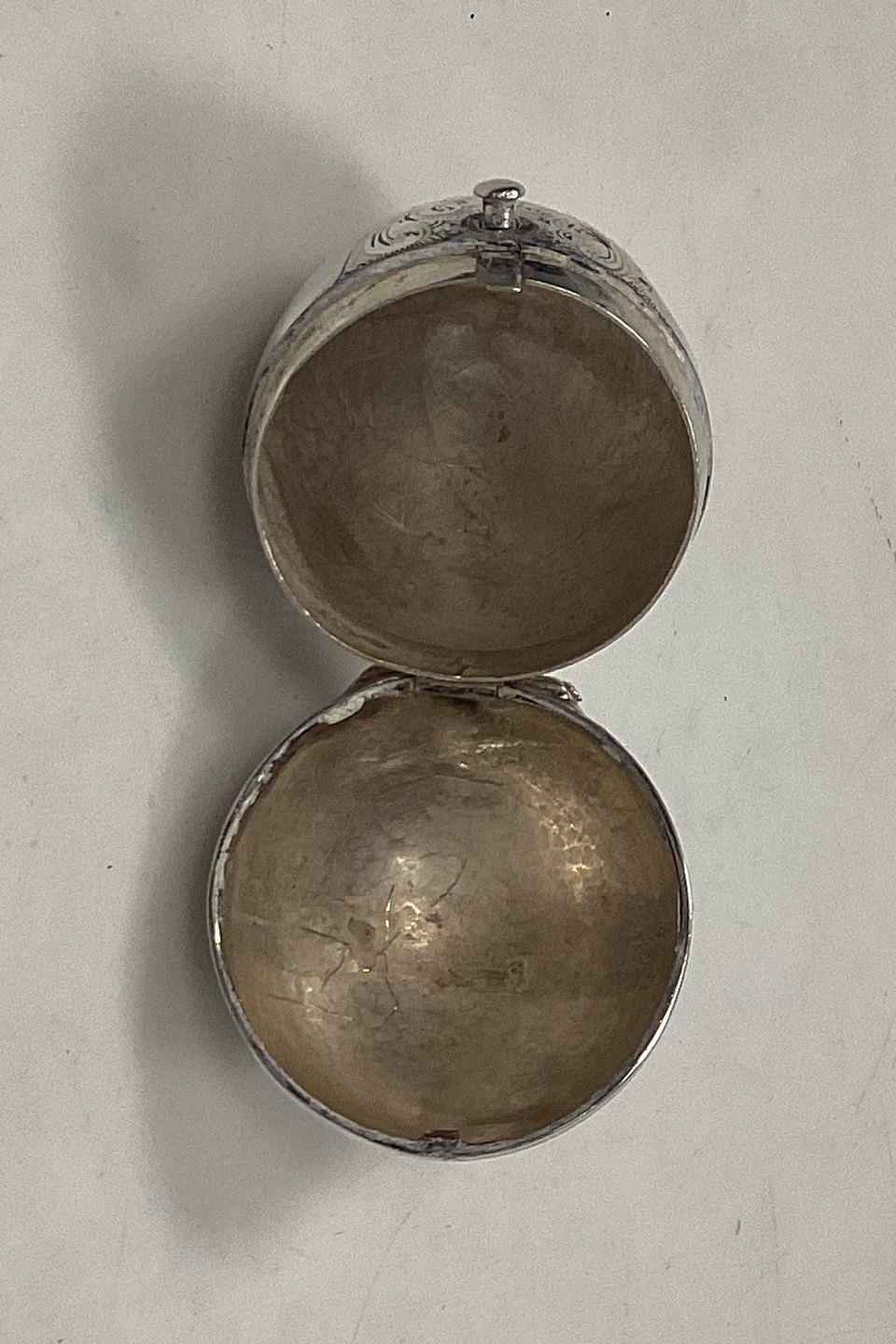 Antik Æggeformet Pilleæske / Snusdåse i sølv