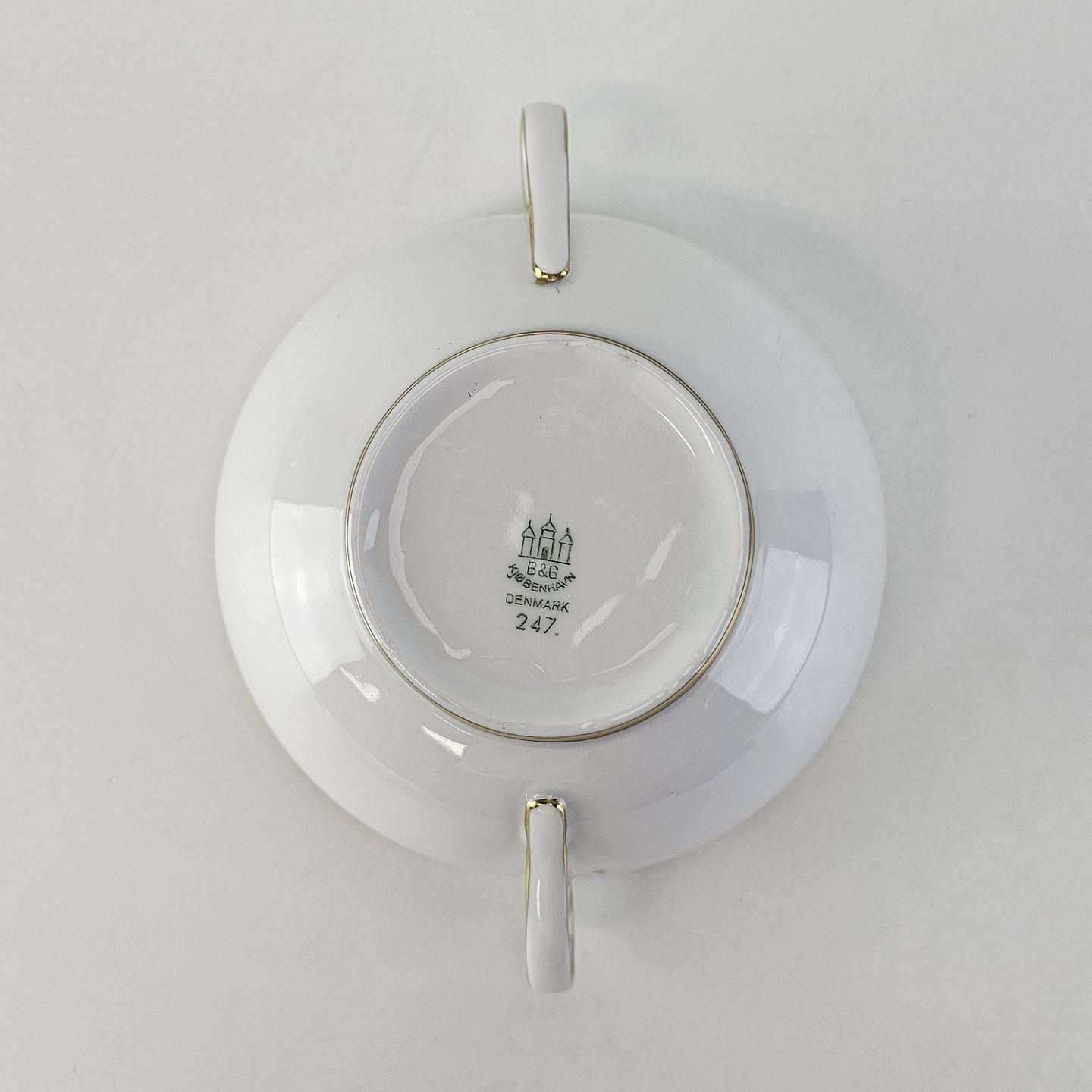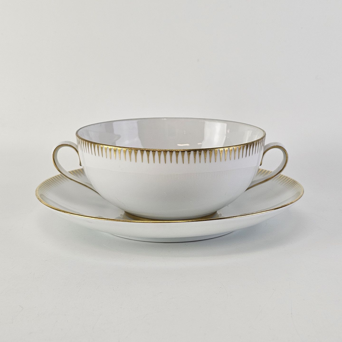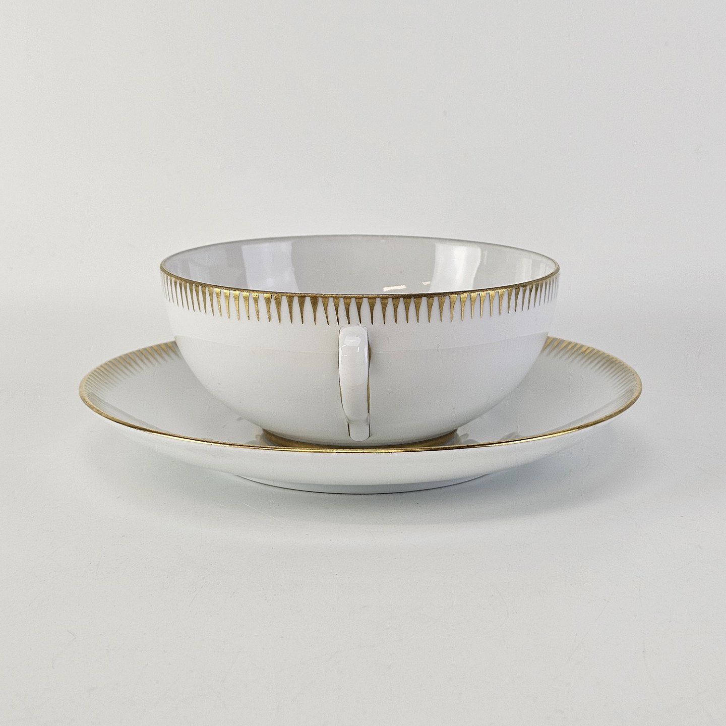 Hvidt porcelæn dekoreret med guld motiv og guldkant