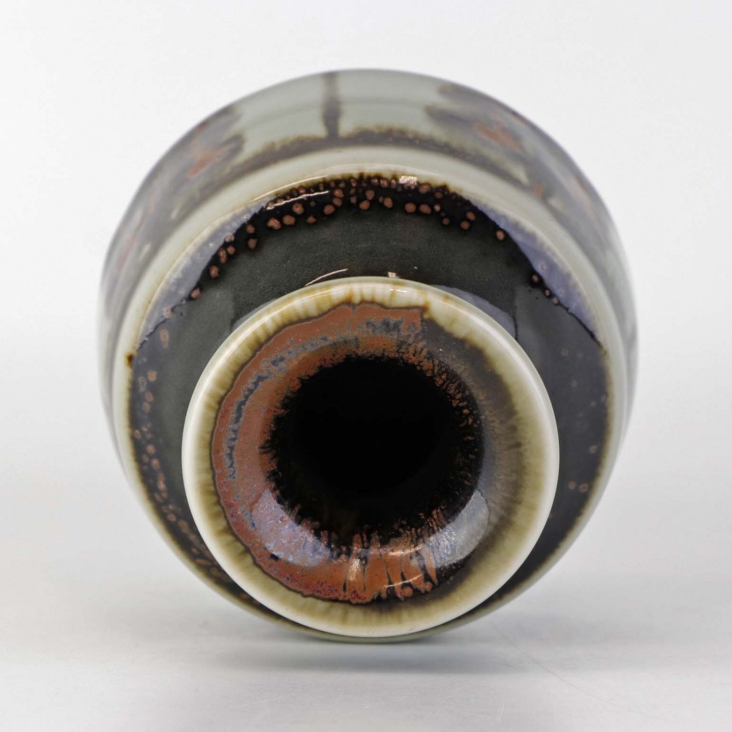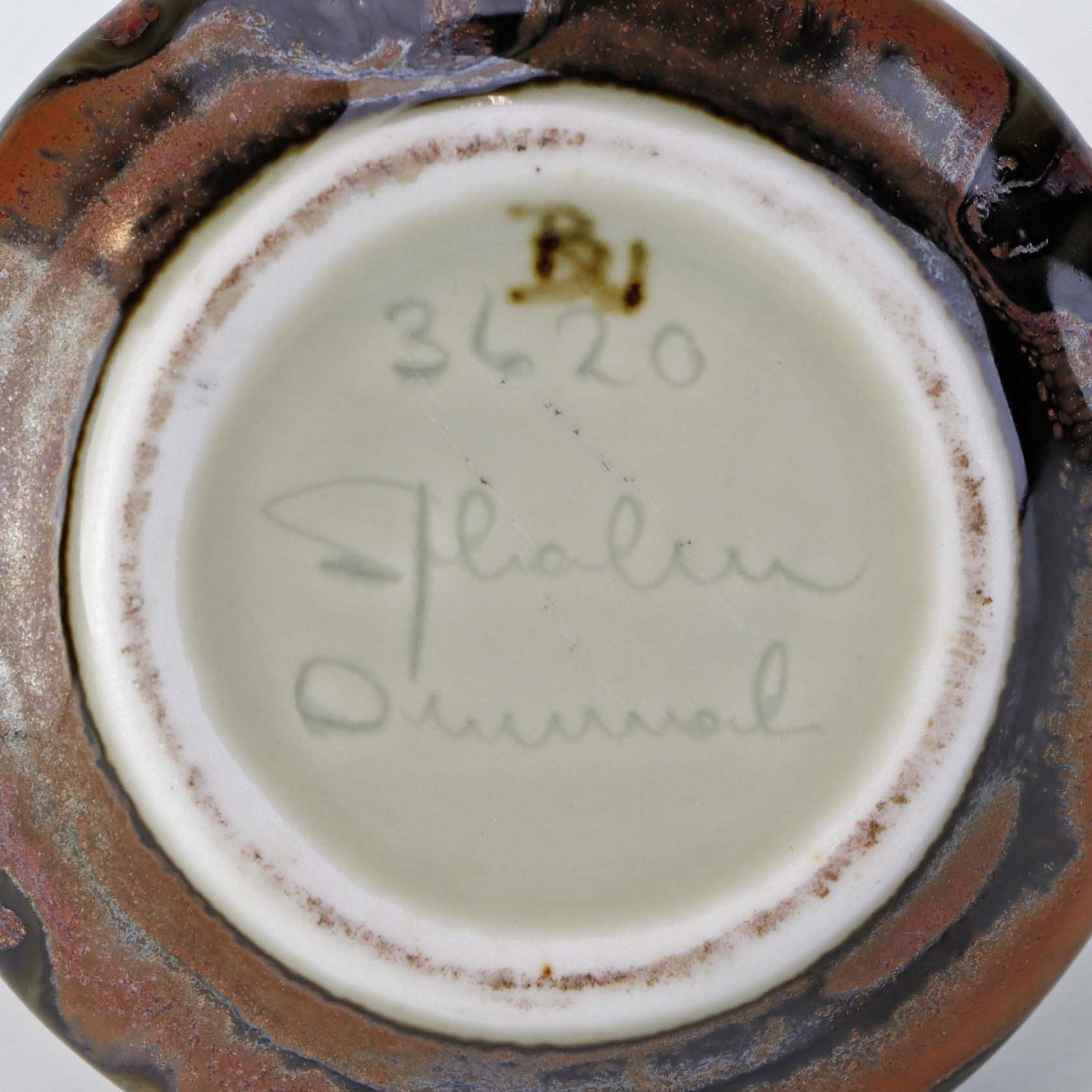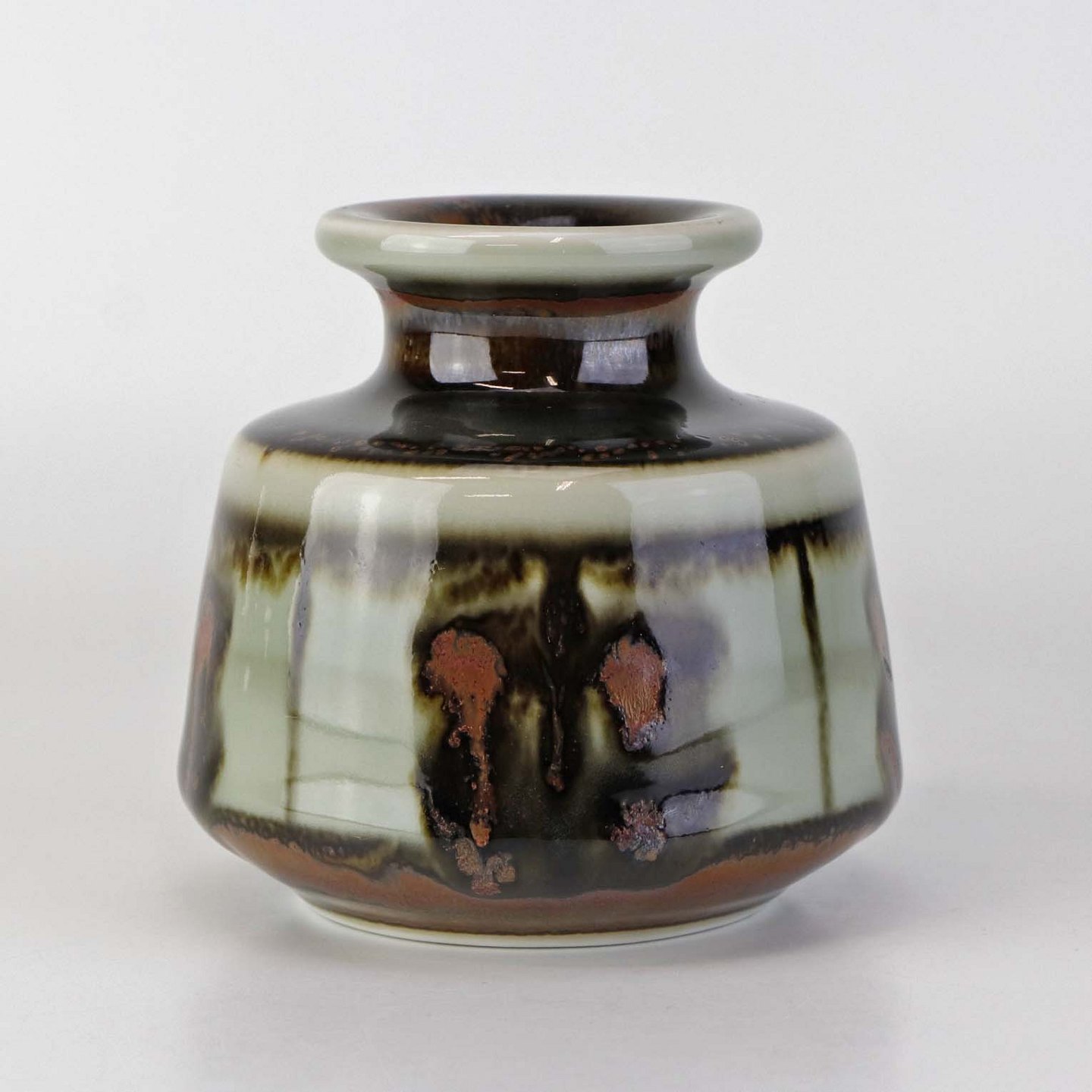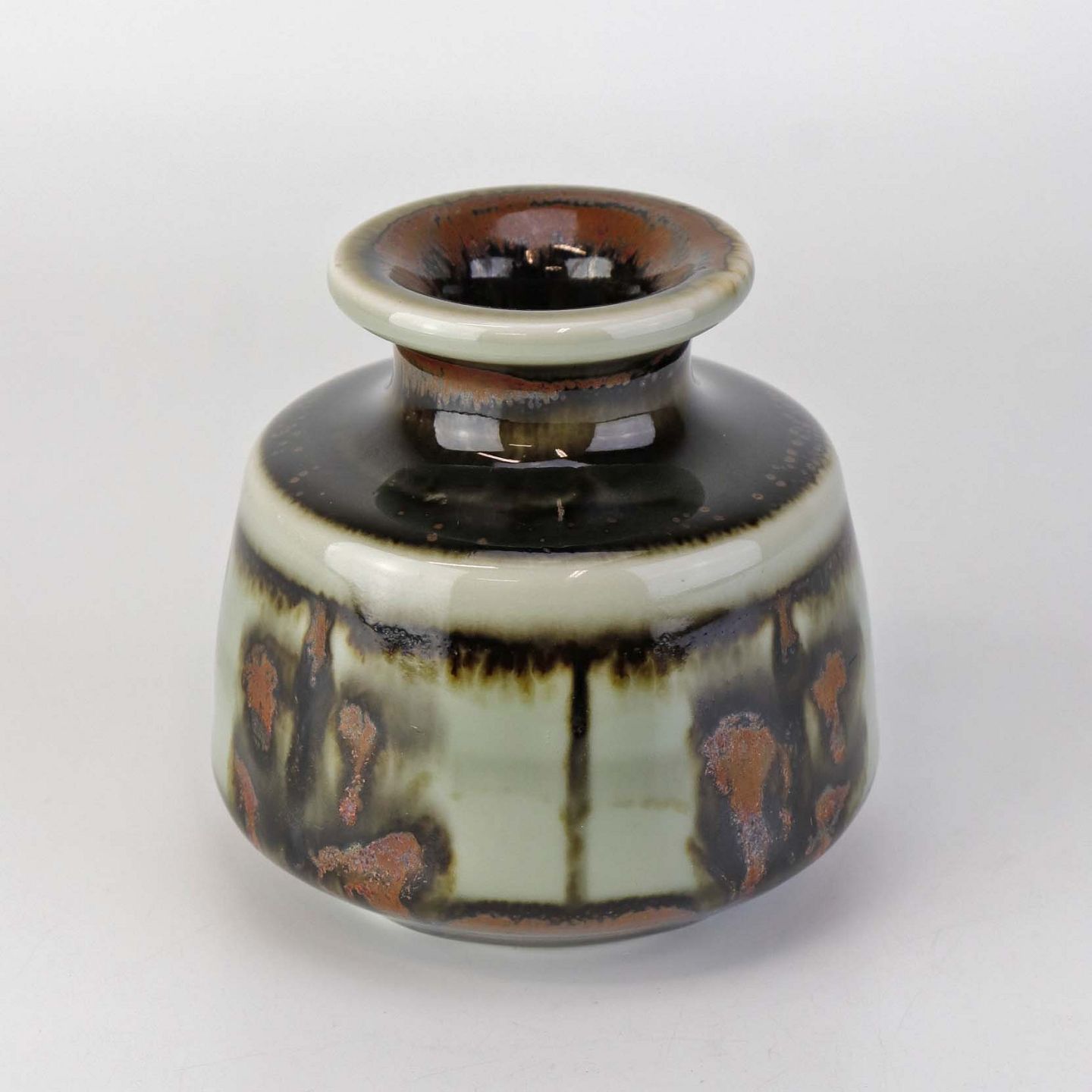 Mindre rund vase i brunglaseret stentøj. Nr. 3620