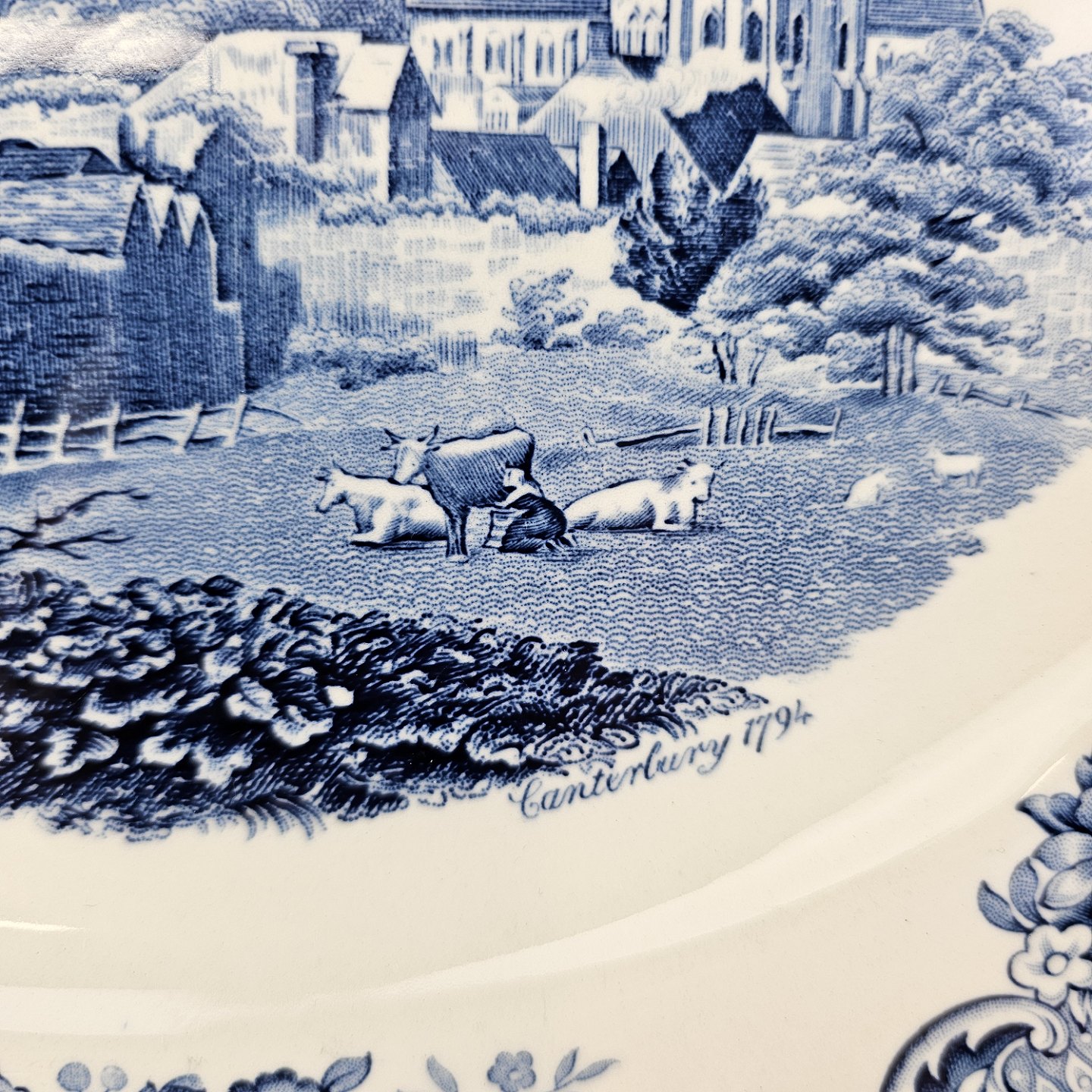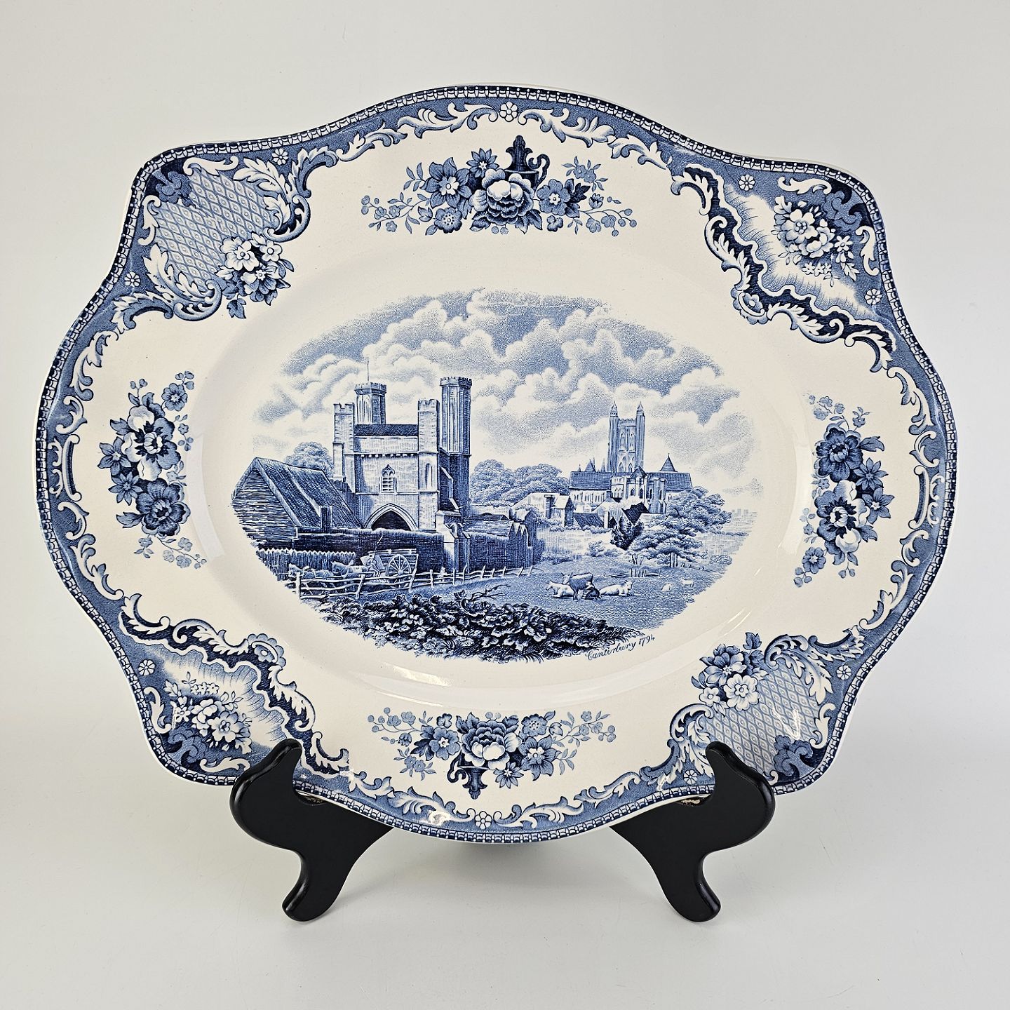 Ovalt daf af engelsk fajance fra stellet Old Britain Castles i blå