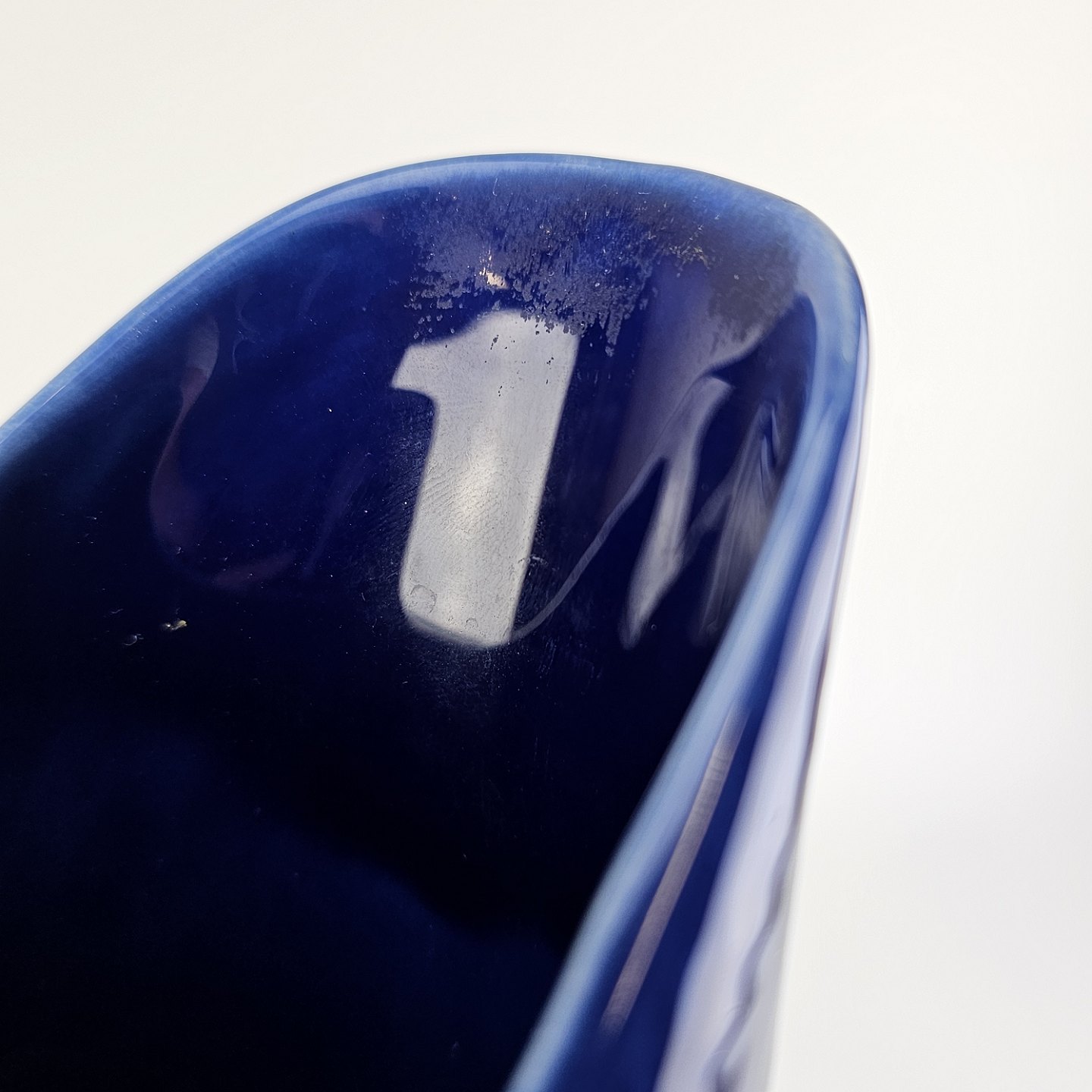 Text available in Danish: Kande i fajance fra stellet Blå Eld nr. 611