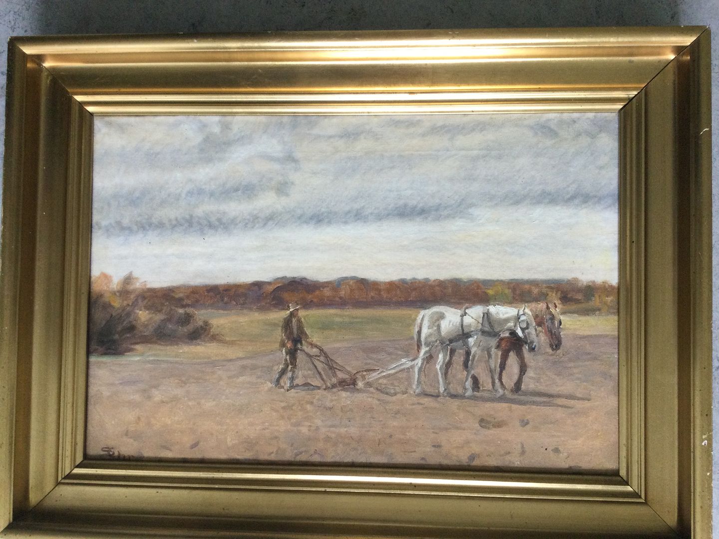 Maleri af Søren Christiansen - Bonde pløjer marken