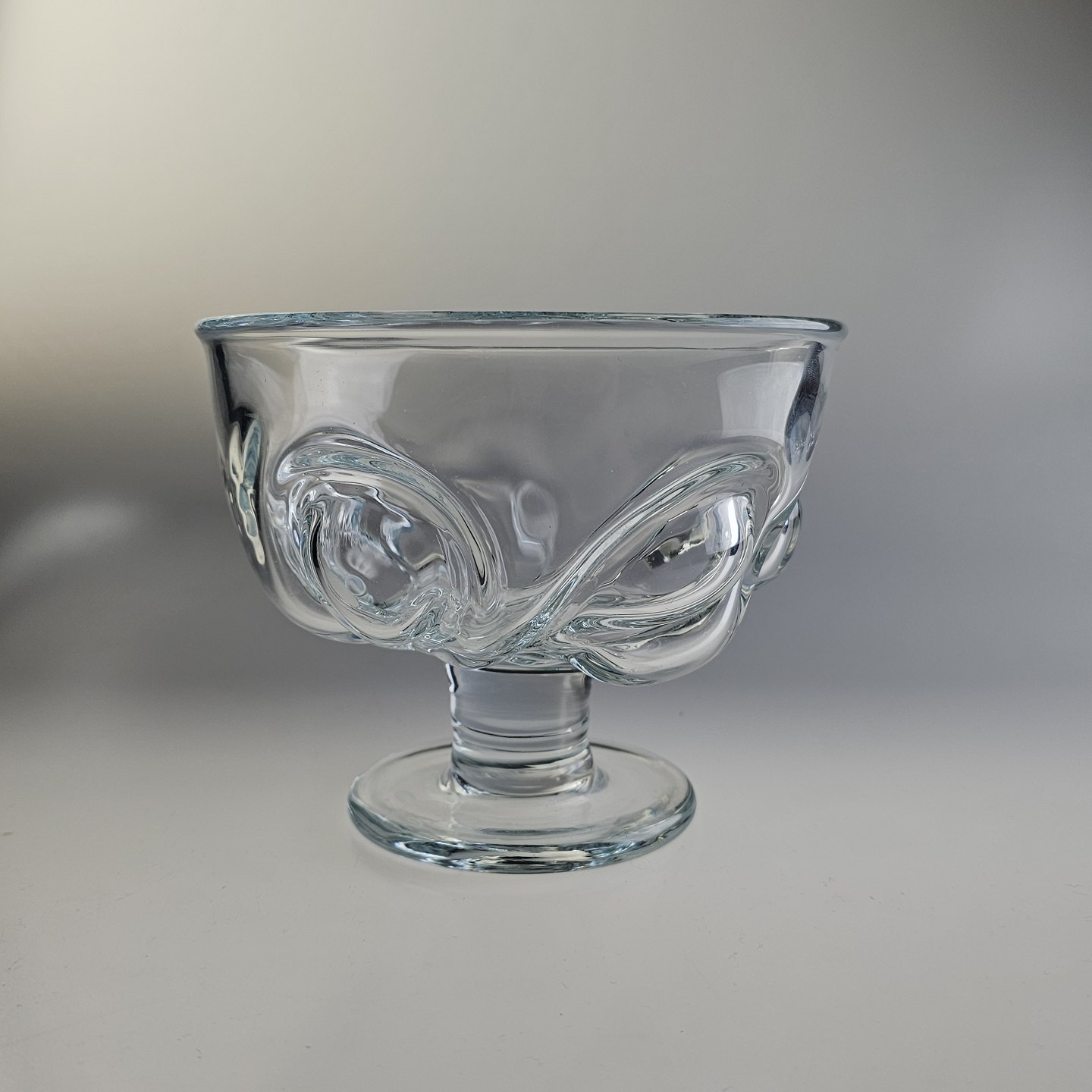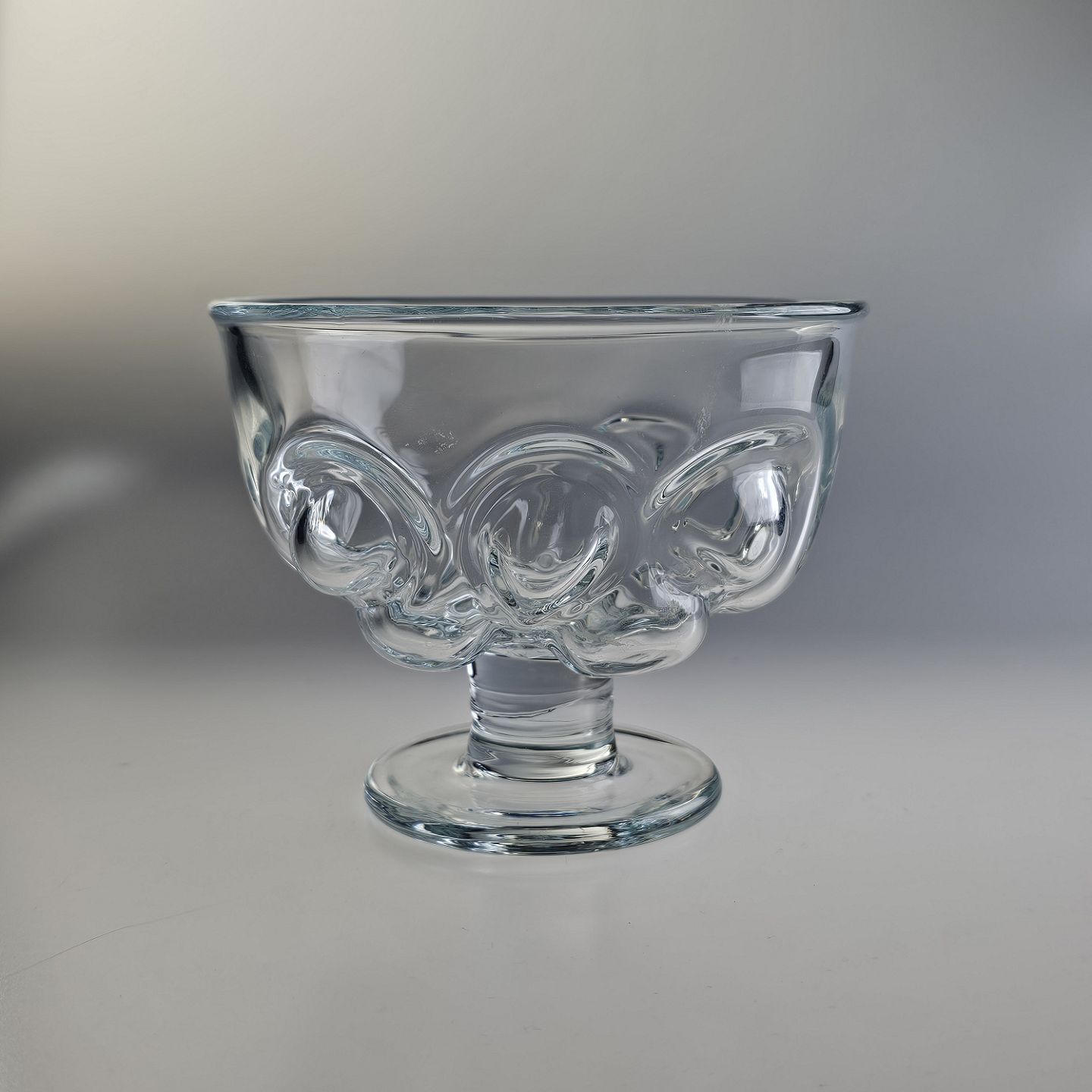 Glas skål på fod fra stellet Banquet, produceret i anledning af Holmegaard's 150 års jubilæum