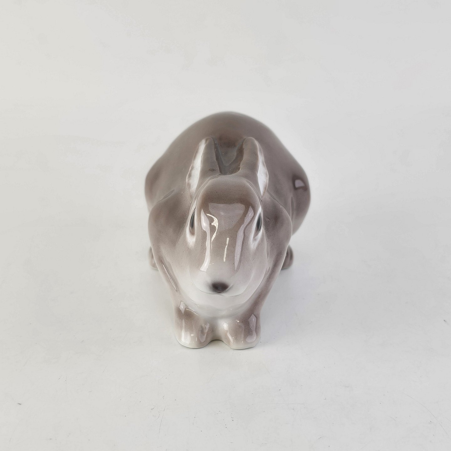 Figur i porcelæn med motiv af en hare eller kanin. Tryggende med ørene nede. Figuren findes i flere udgaver.