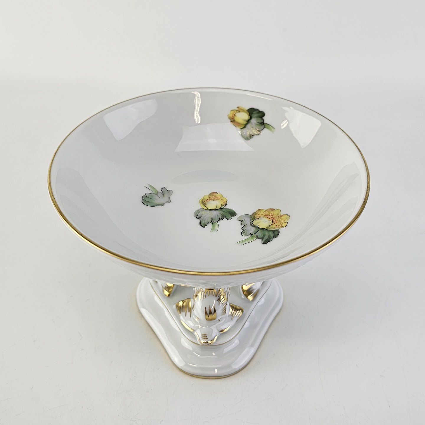 Hvidt porcelæn med motiv af gule erantis blomster og guldkant