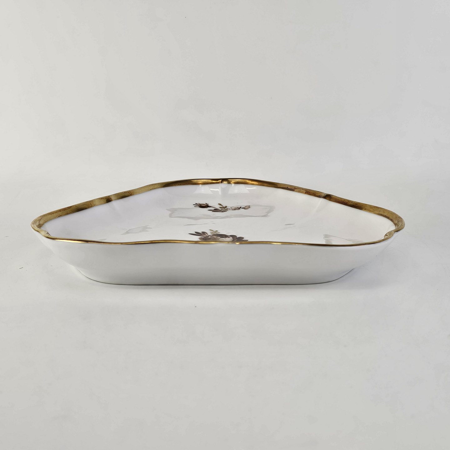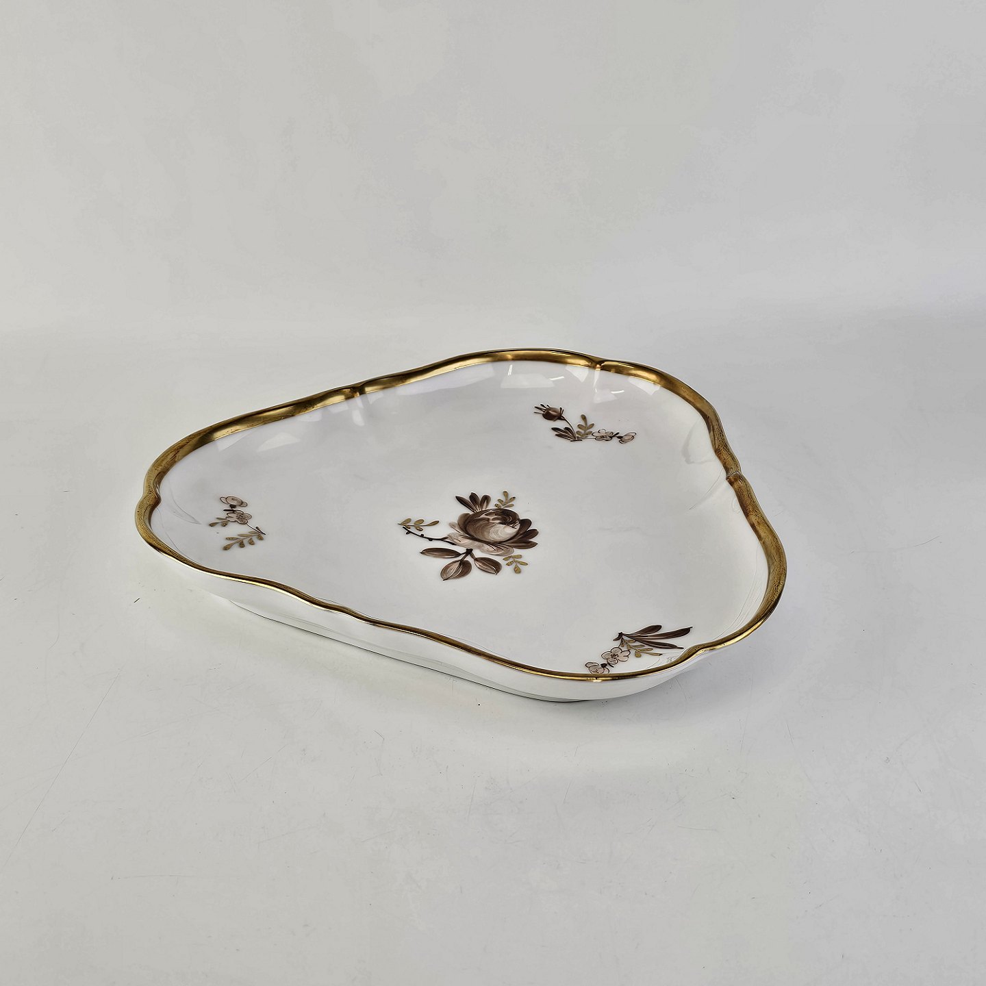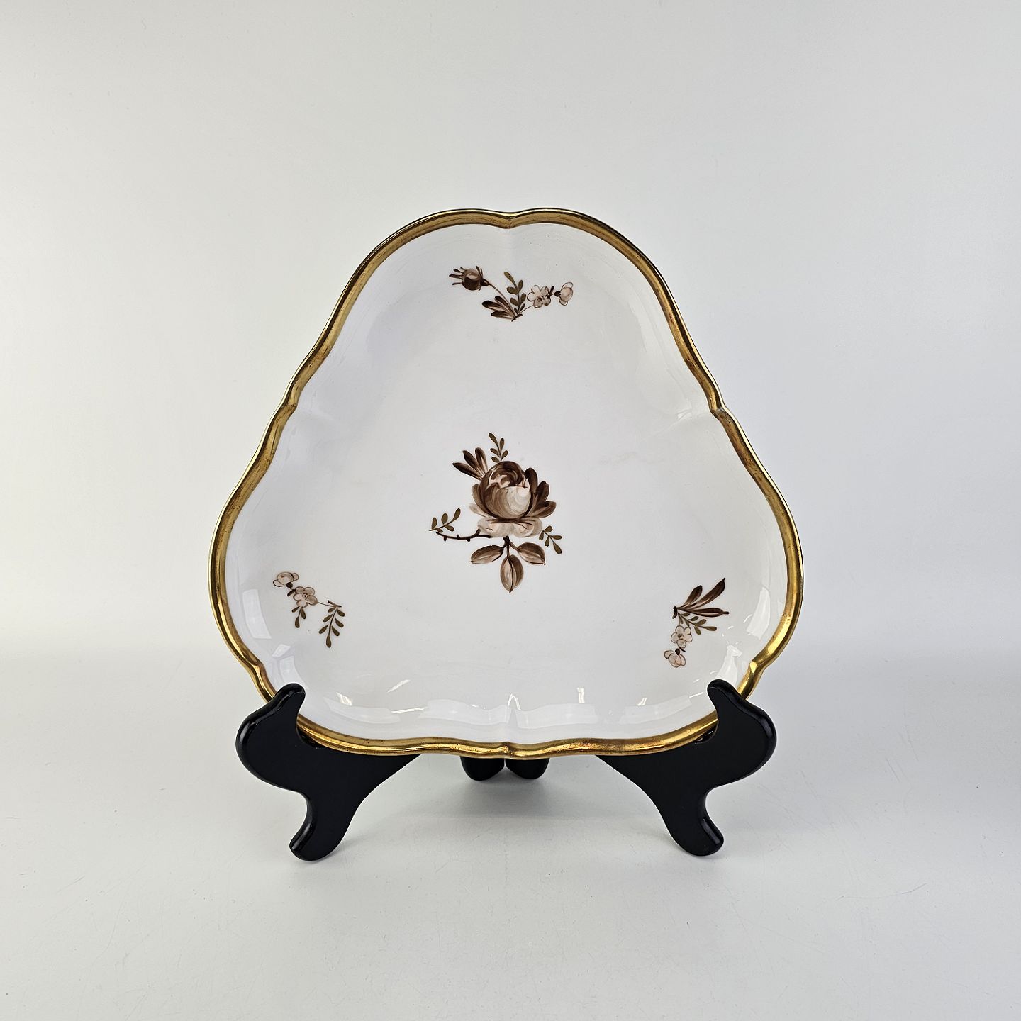 Trekantet fad i porcelæn fra stellet Brun Rose