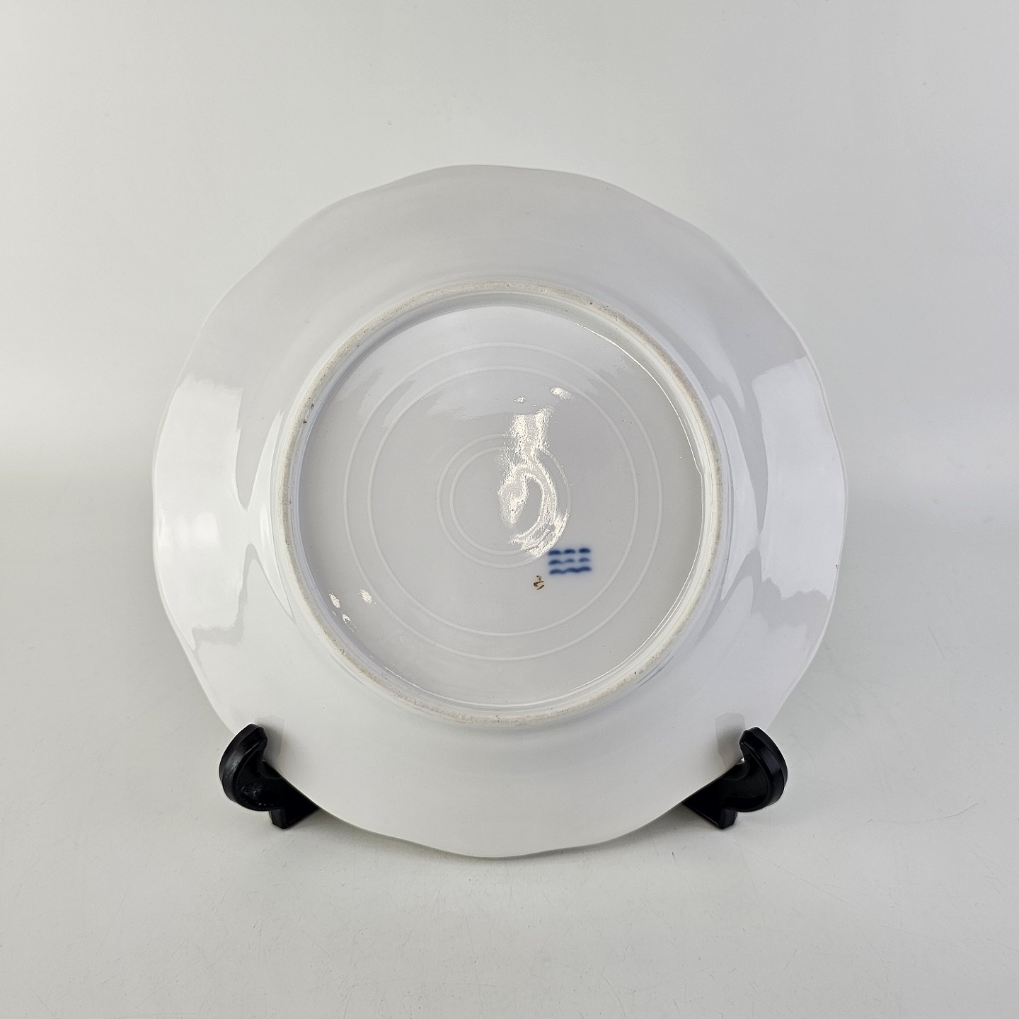 Text available in Danish: Dyb tallerken i kongeligt porcelæn fra Det hamrede stel