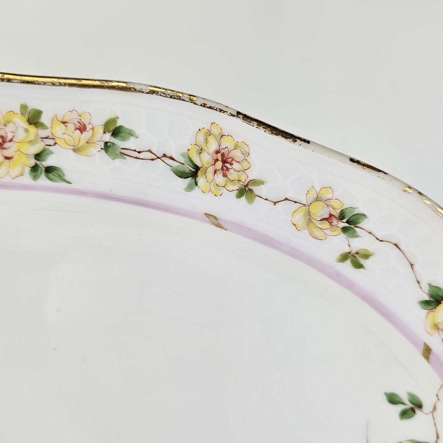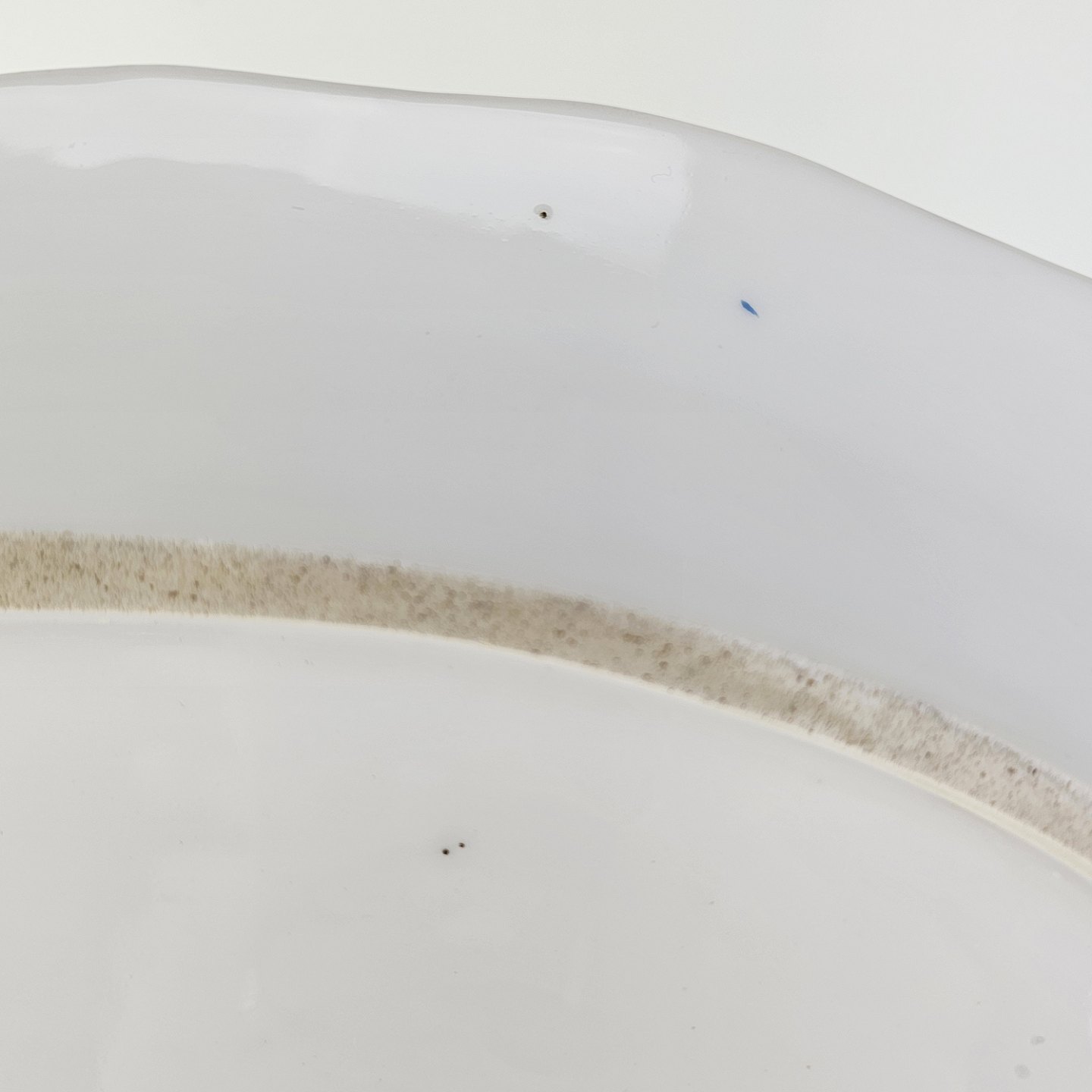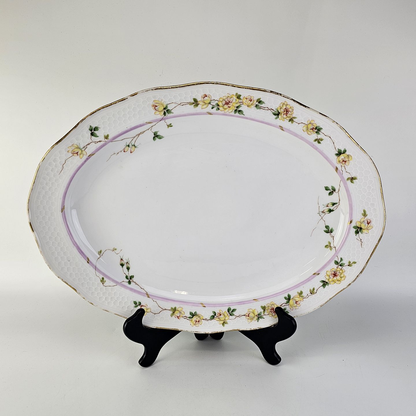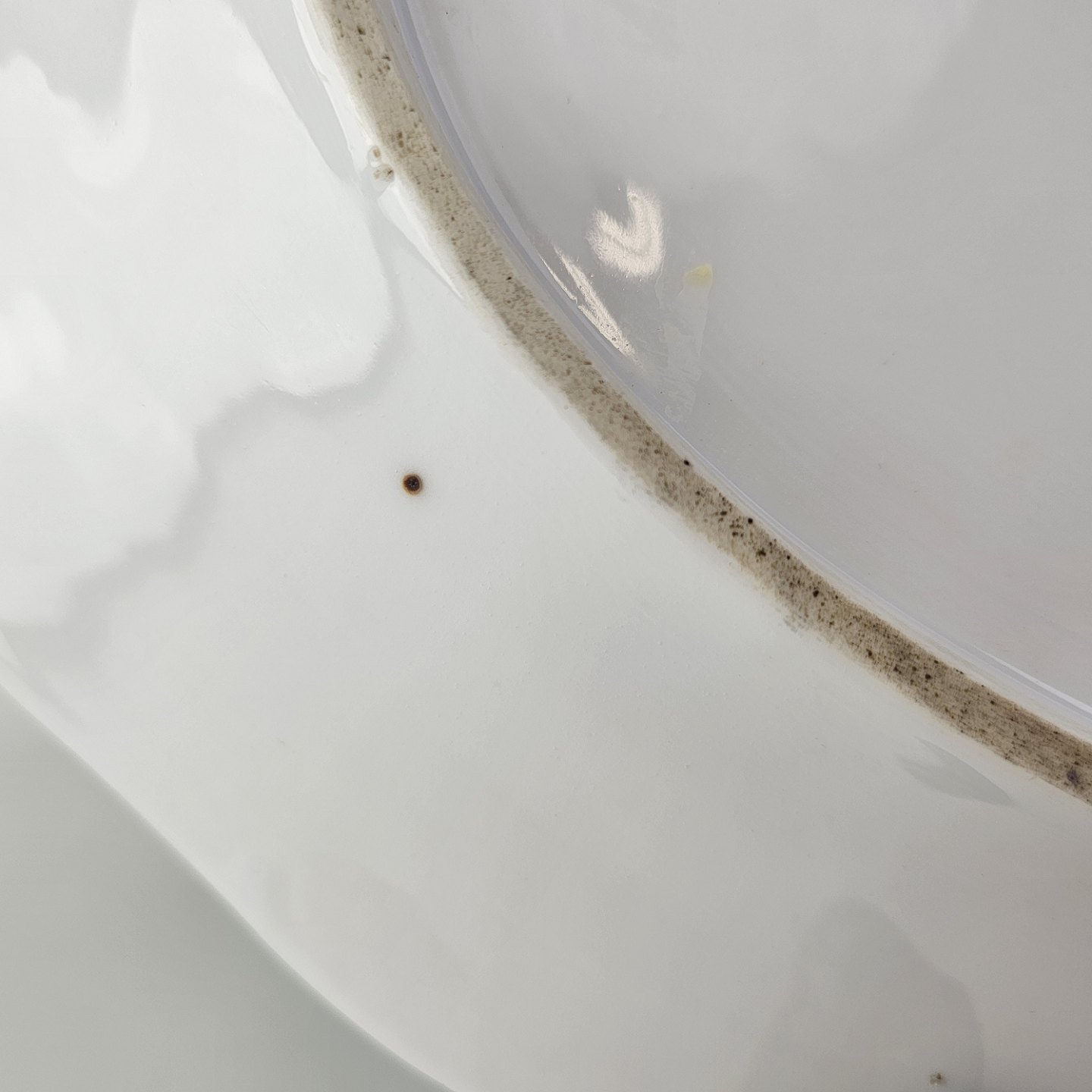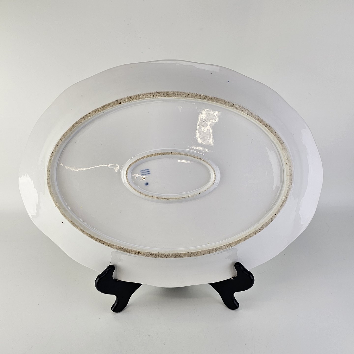 Text available in Danish: Stort ovalt fad i kongeligt porcelæn fra Det hamrede stel