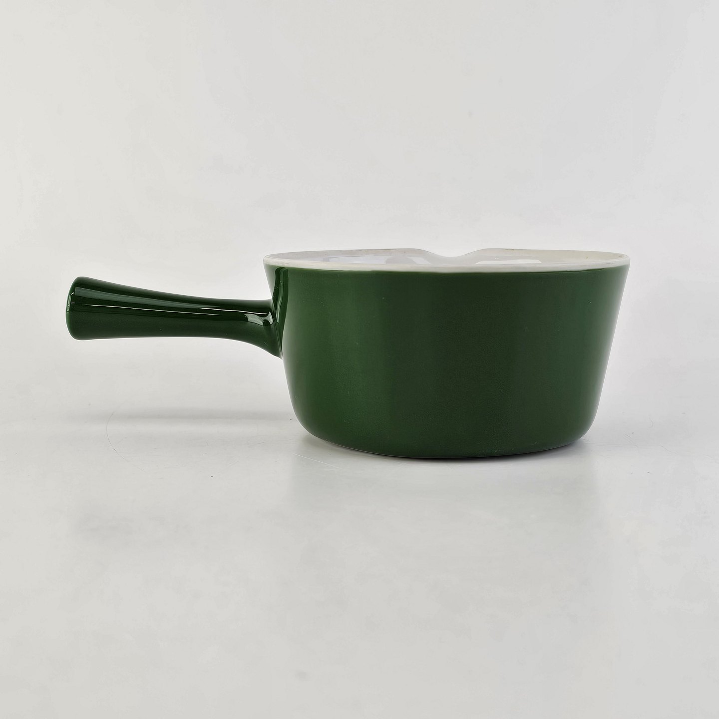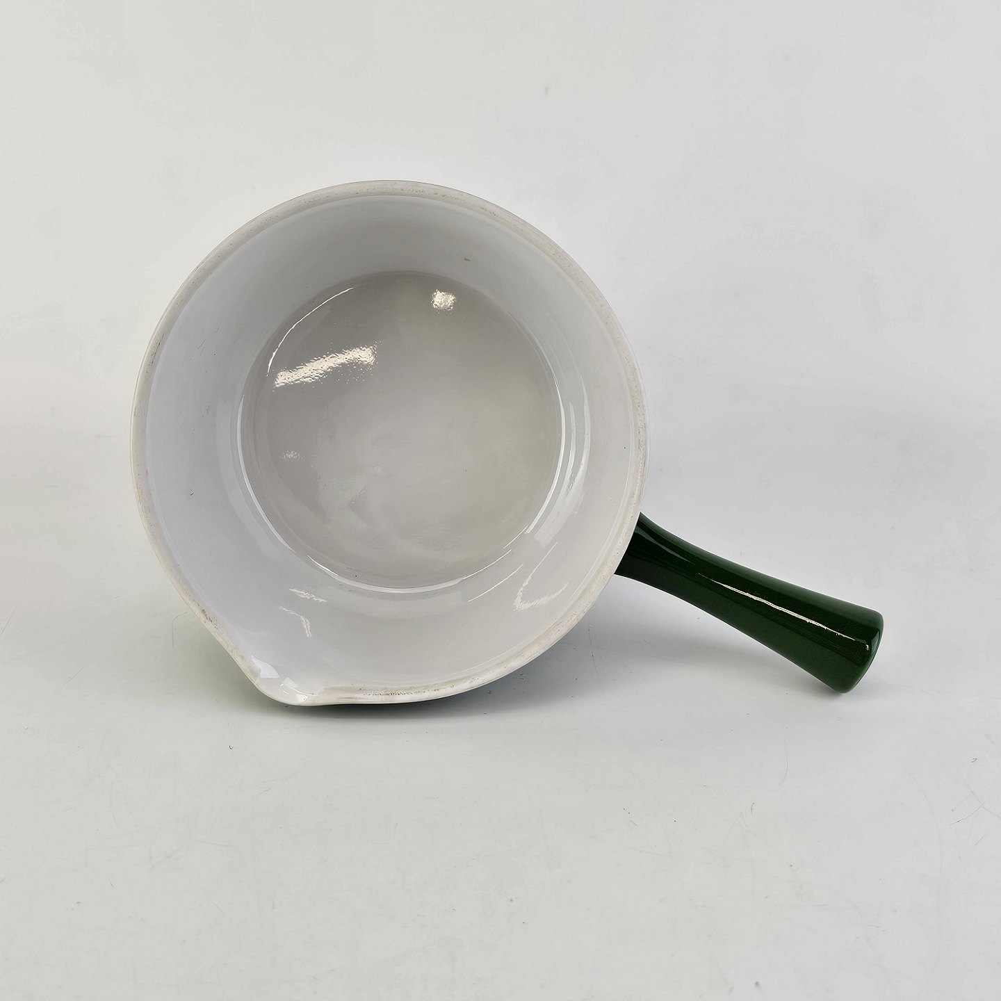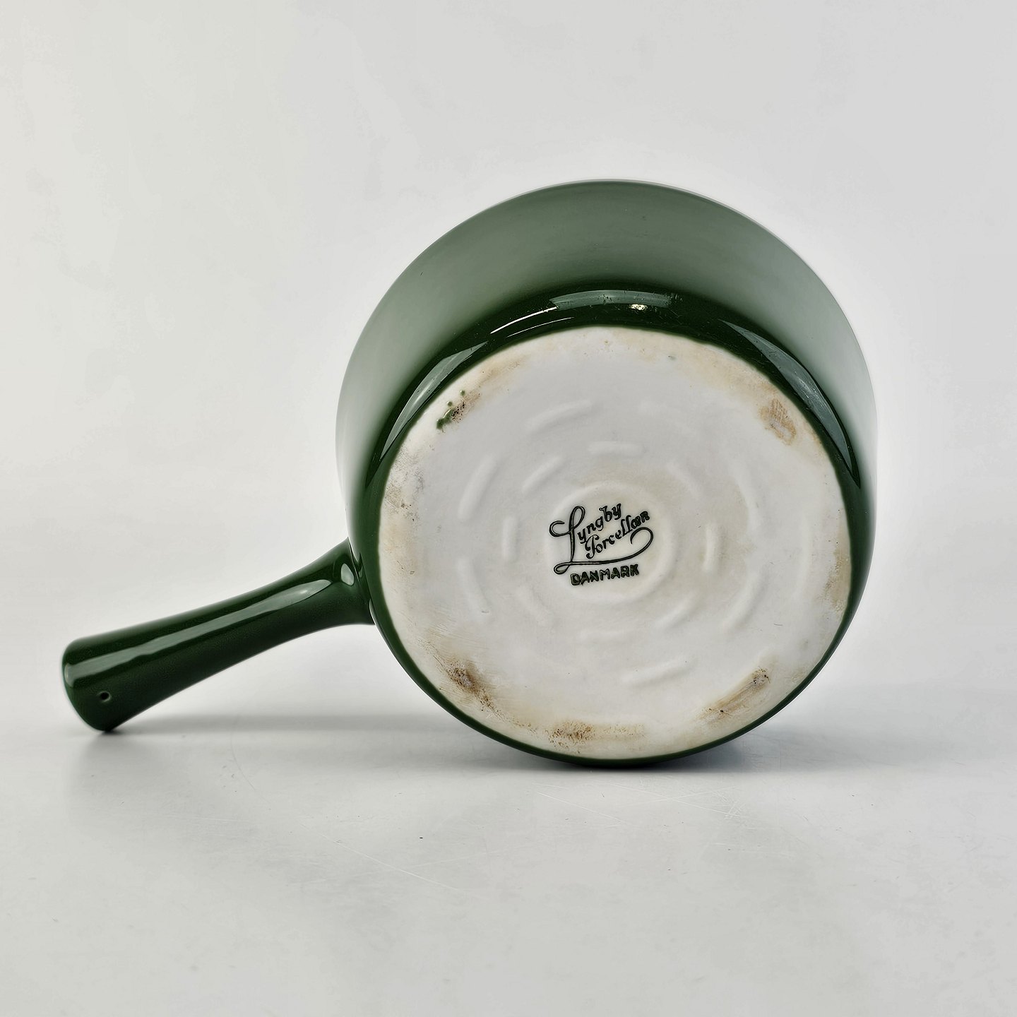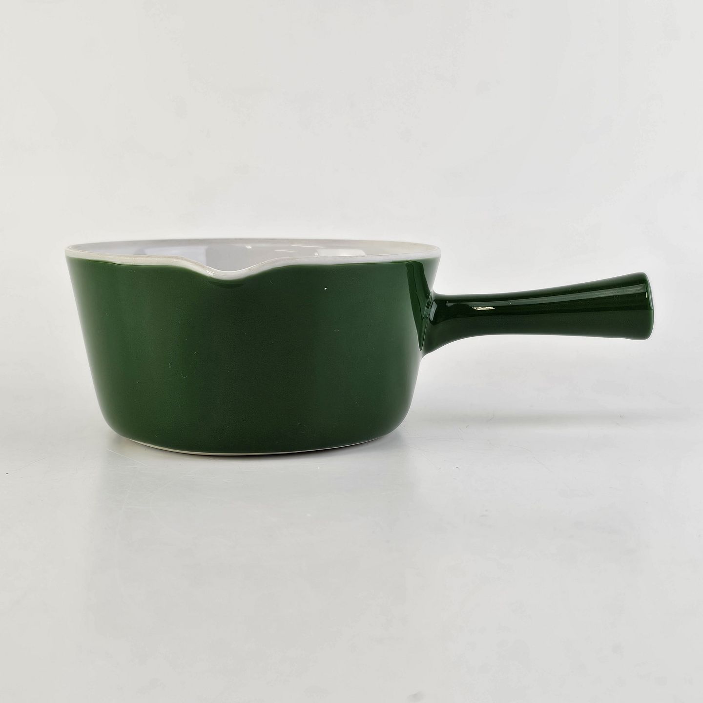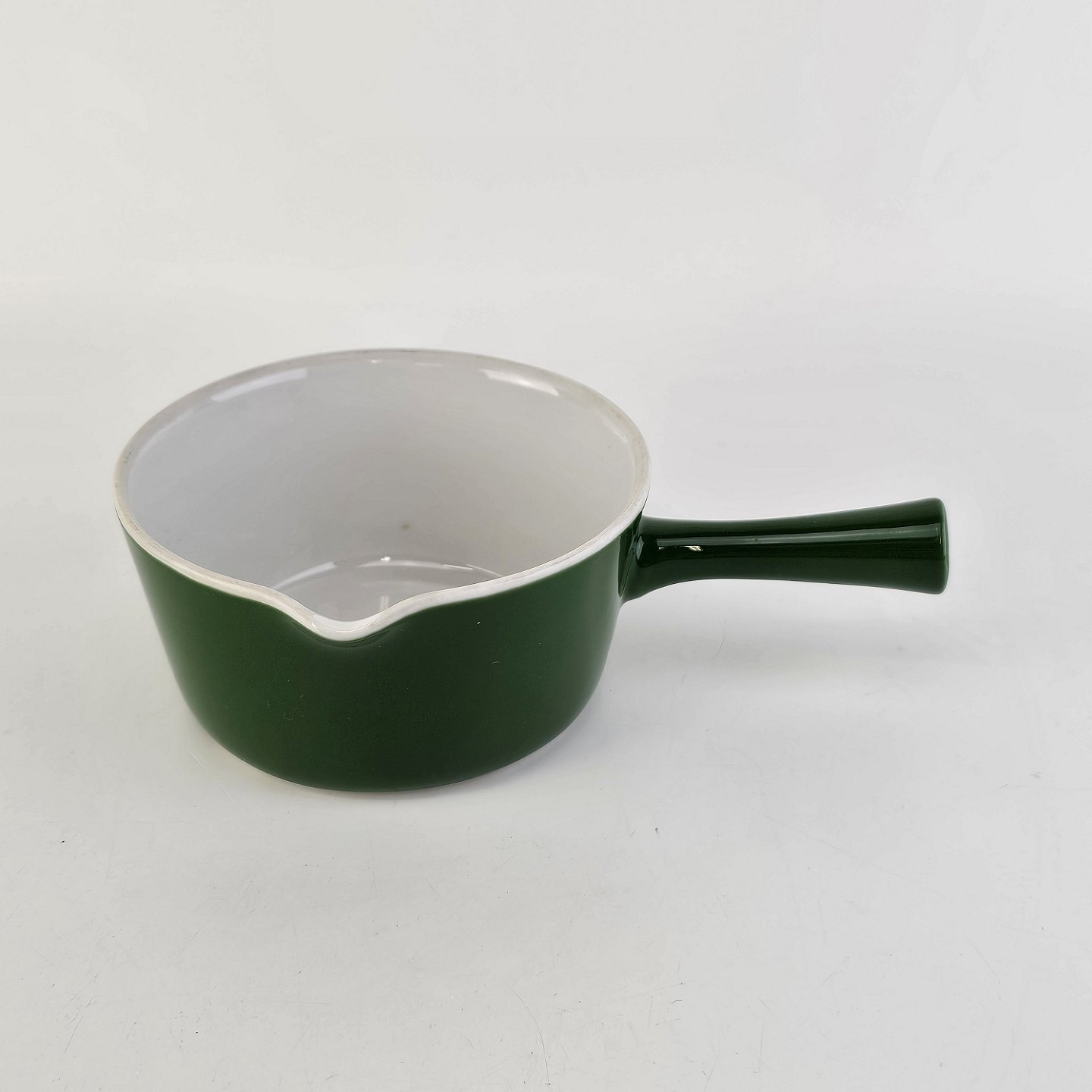Smørnæb med håndtag og hældetud i porcelæn fra stellet Grøn Glasurfarvet
