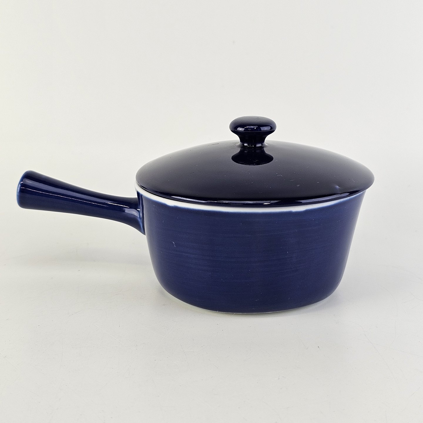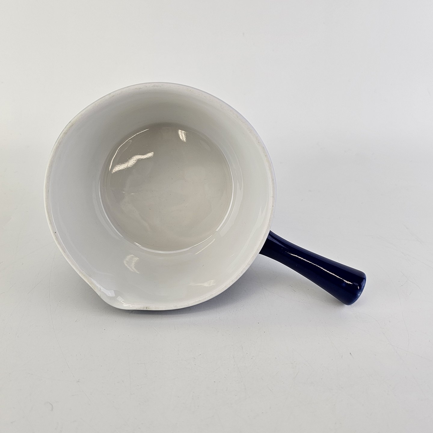 Smørnæb med håndtag og hældetud i porcelæn fra stellet Blå Glasurfarvet