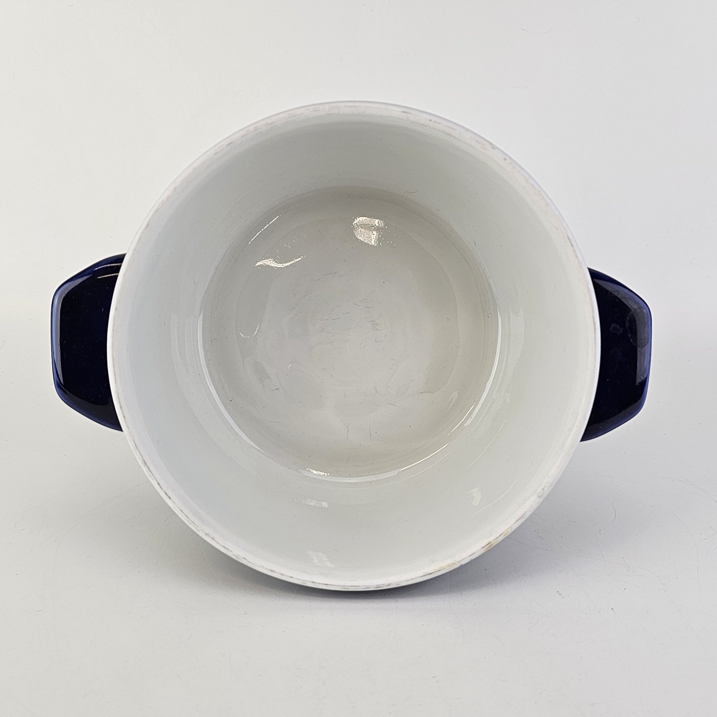 Gryde med håndtag i porcelæn fra stellet Blå Glasurfarvet
