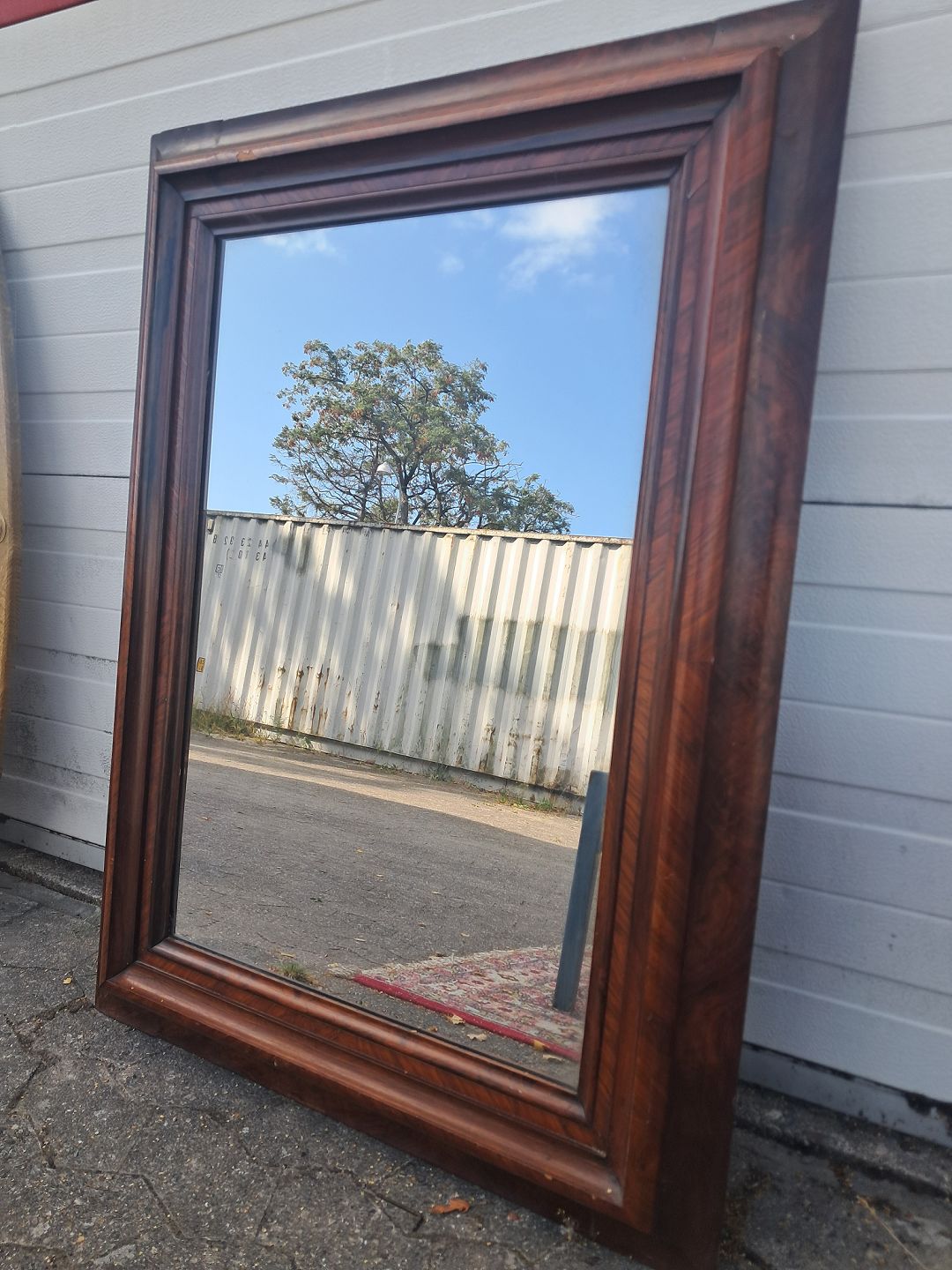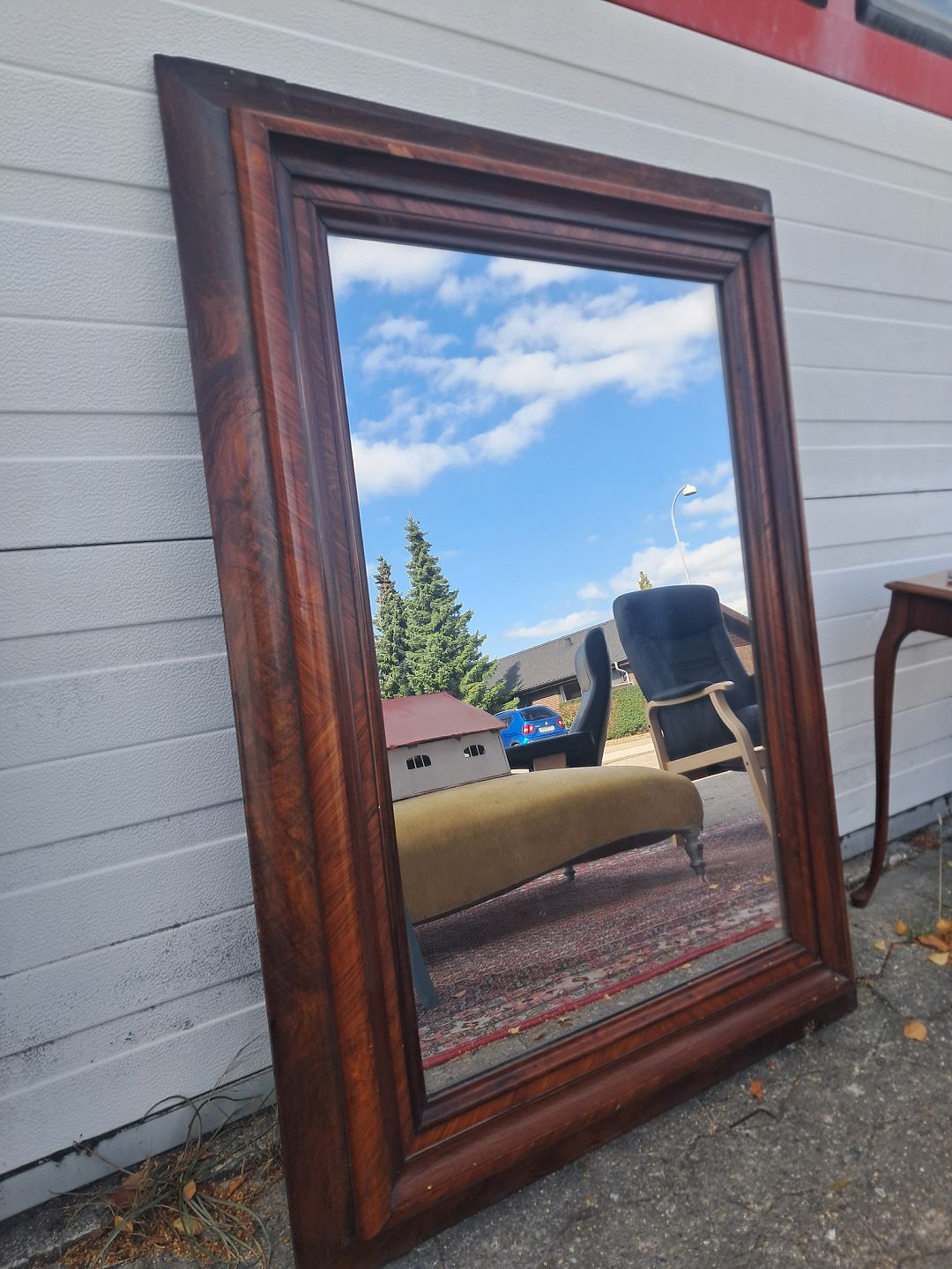 Spejl i fineret mahogni, fra 1900erne.