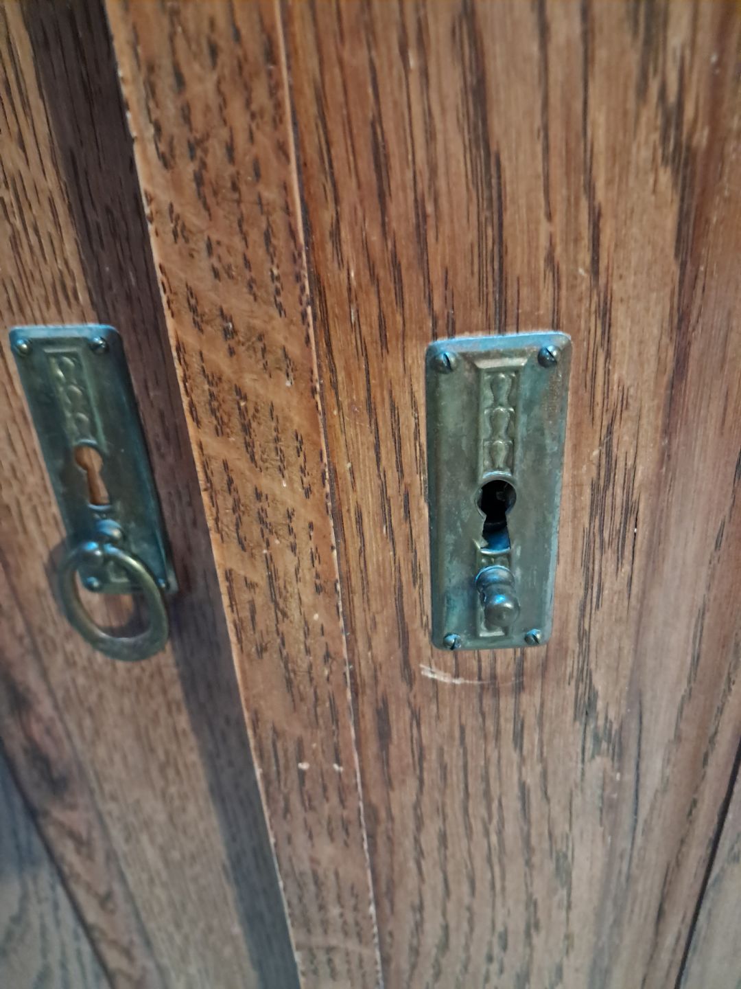 Det har brugsspor og den ene låge lukker ikke helt i.