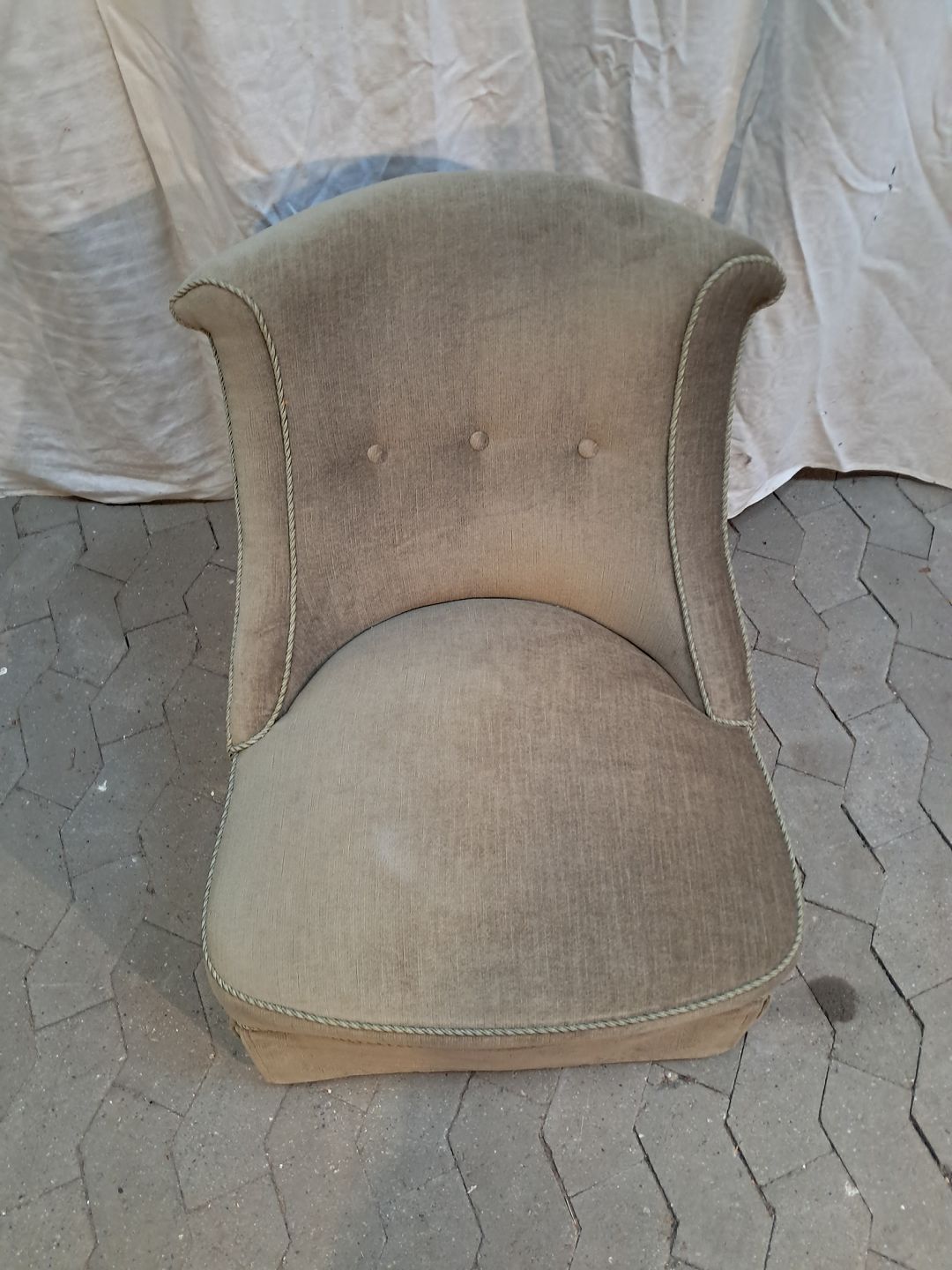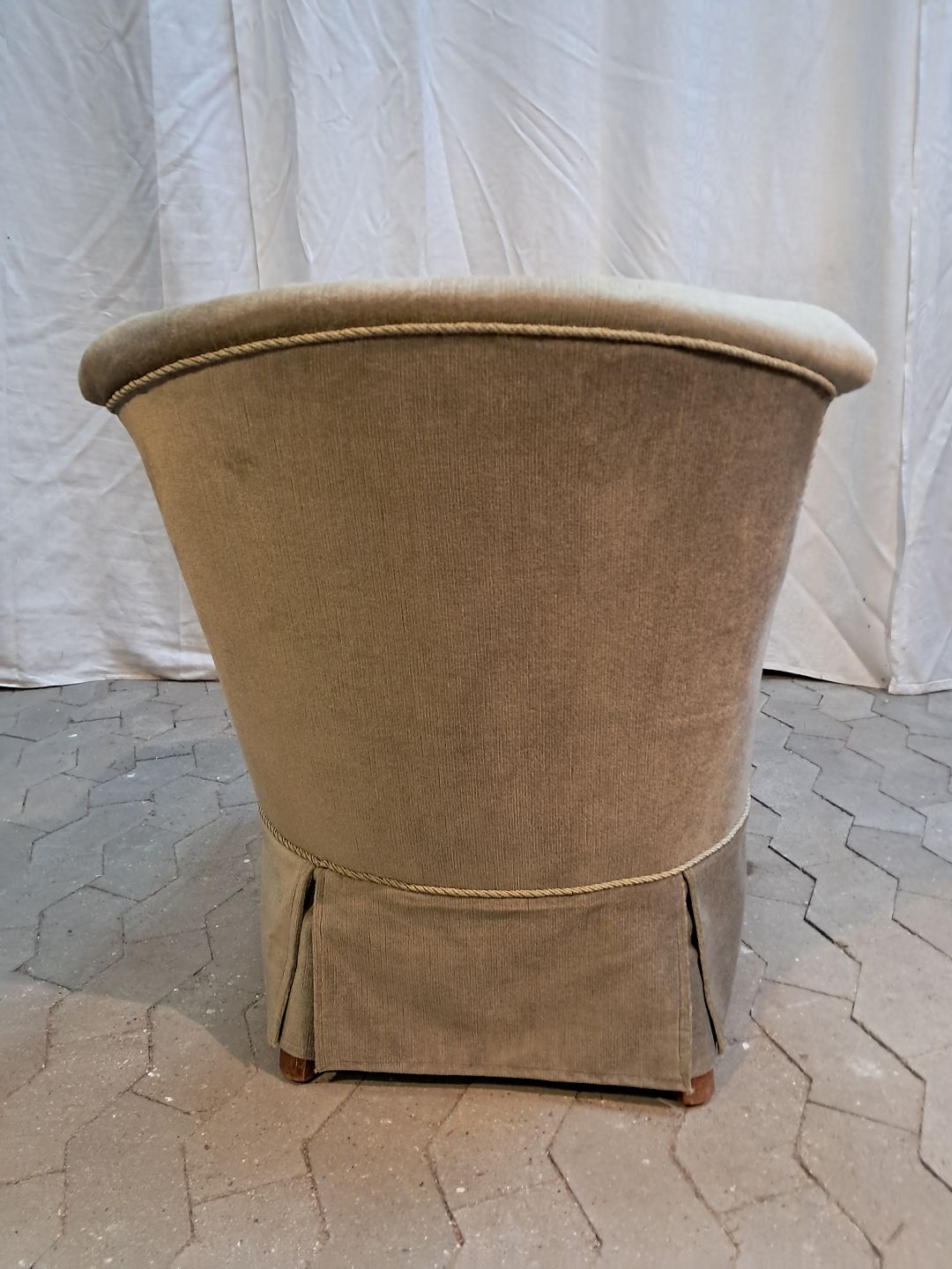 Lænestol i lysegrøn velour, fra 1920erne.