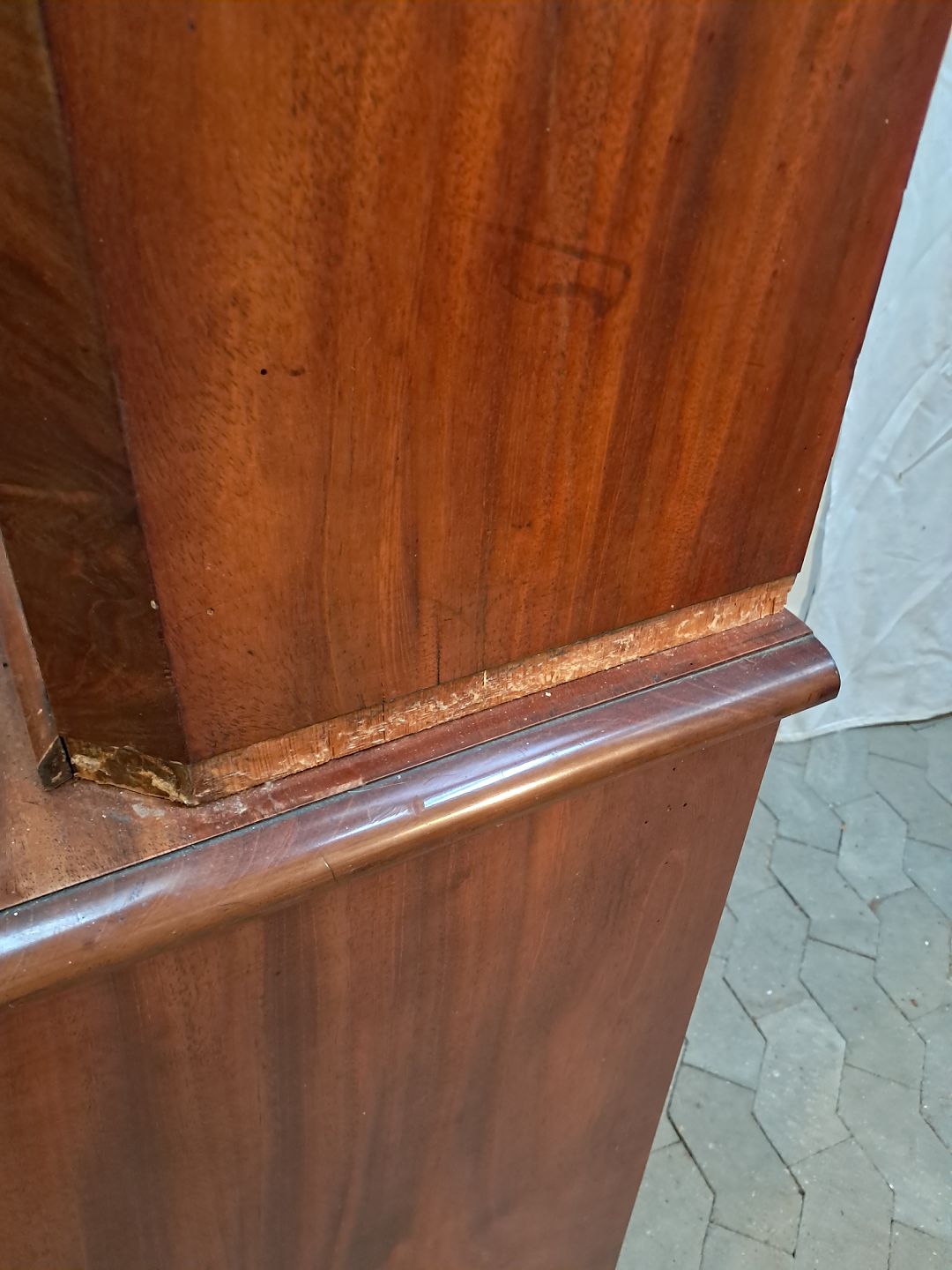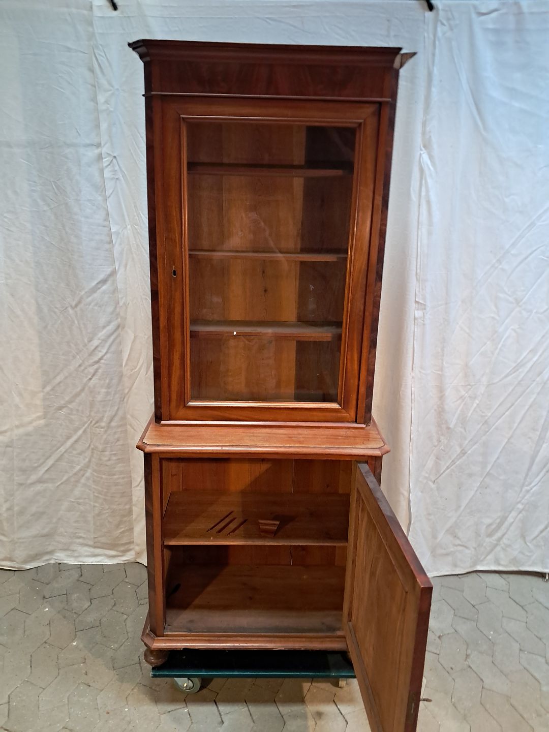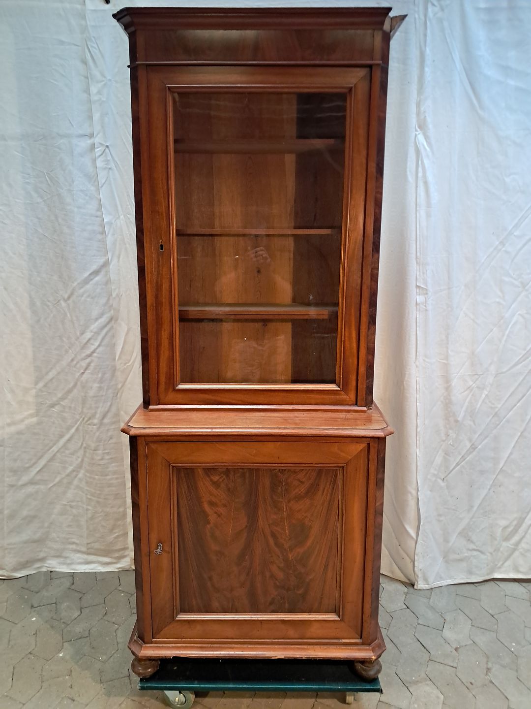 2 Delt skab i fineret mahogni, fra 1900erne.