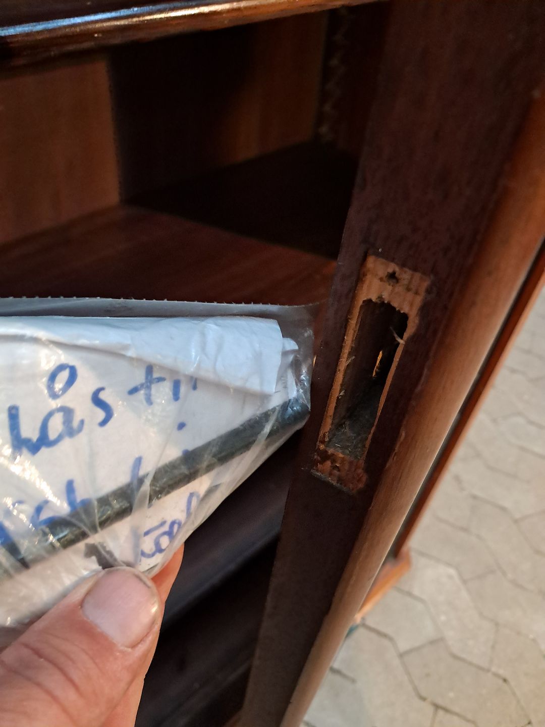 Vitrineskab i fineret mahogni, fra 1900erne.