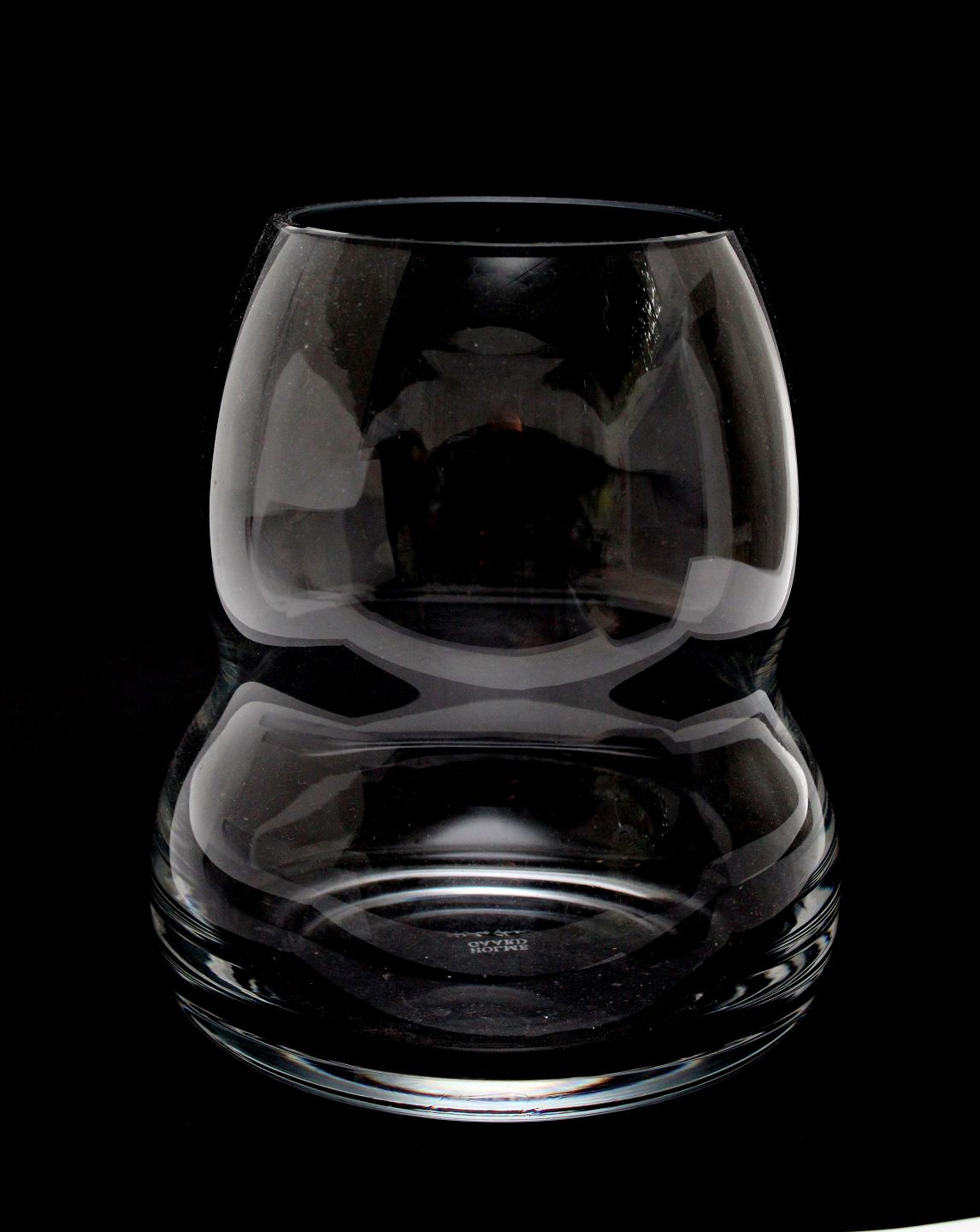Text available in Danish: Holmegaard, Gracious vase. Designet af Knud Holscher i 2007. Gracious er produceret i 3 størrelser, hvor denne er den mindste. Højde 20 cm. Diameter 17,5 cm. Øverste diameter 11 cm. Sandblæst signatur i bund: Holmegaard Knud Holscher. Pris: 425 kr. stk. Lager: 1