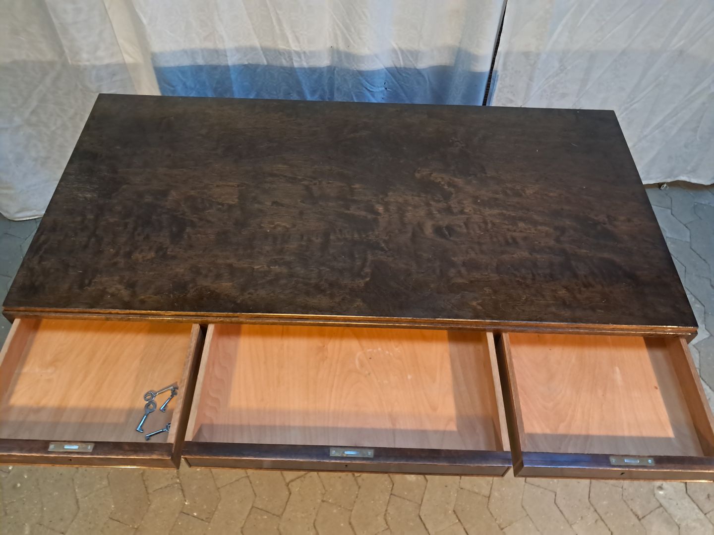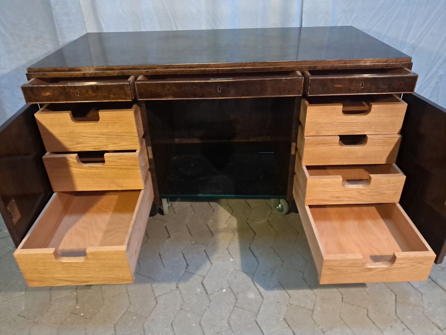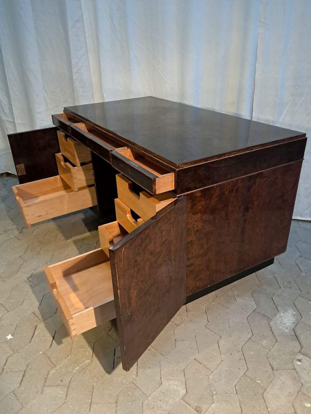 Skrivebord i fineret birketræ, fra 1930erne.