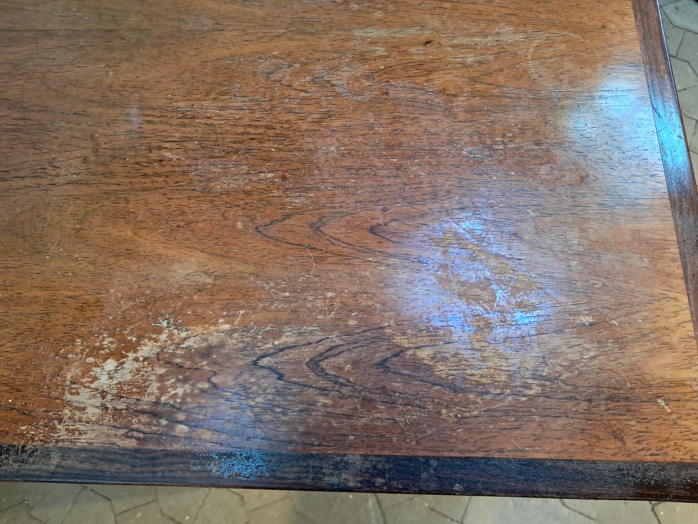 Det har brugsspor og bordpladen trænger til service.