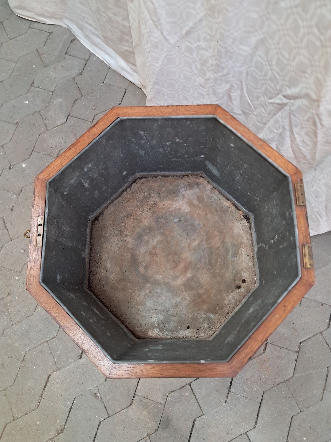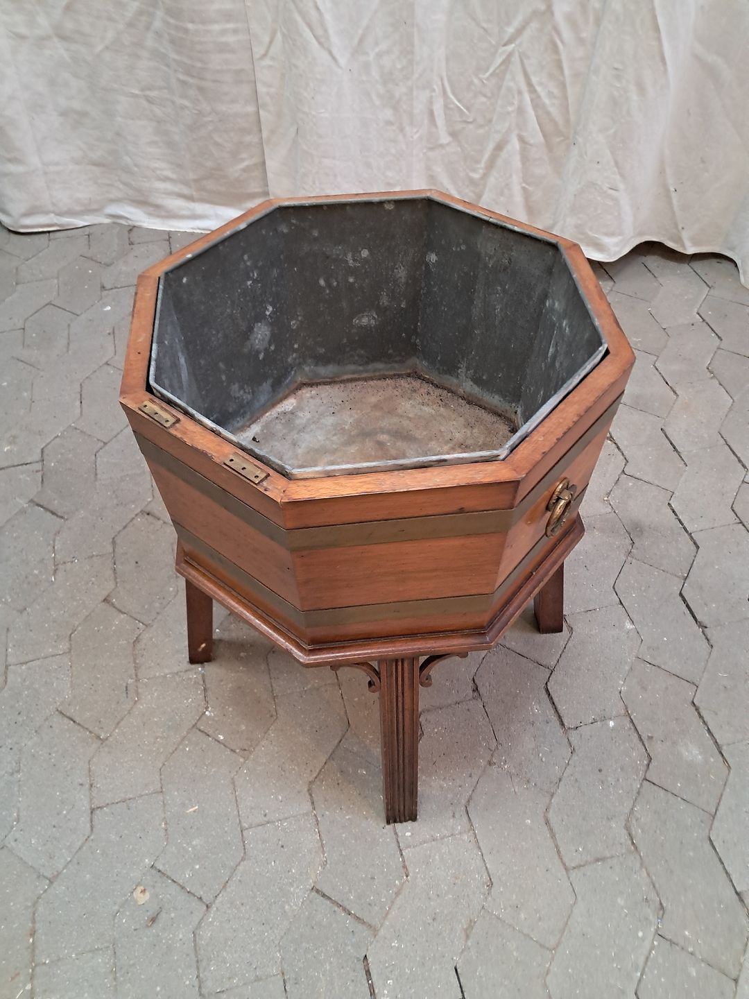 Plantekasse i mahogni med zinkspand, fra 1960erne.