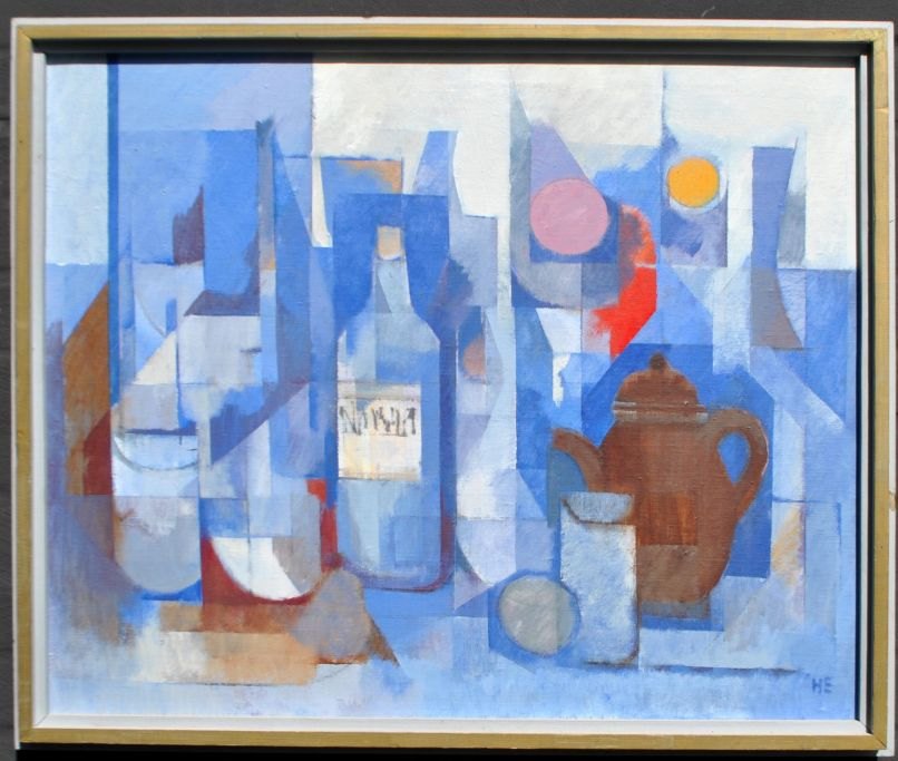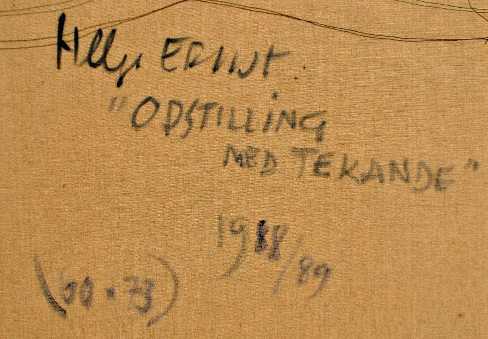 Ernst, Helge (1916 - 1991) Denmark: Arrangement with teapot. Oil on canvas. Signed. 60 x 73 cm. Framed: 66 x 78 cm. Verso signed: Helge Ernst 1988/1989. Exhibited: Art Gallery, Aarhus.