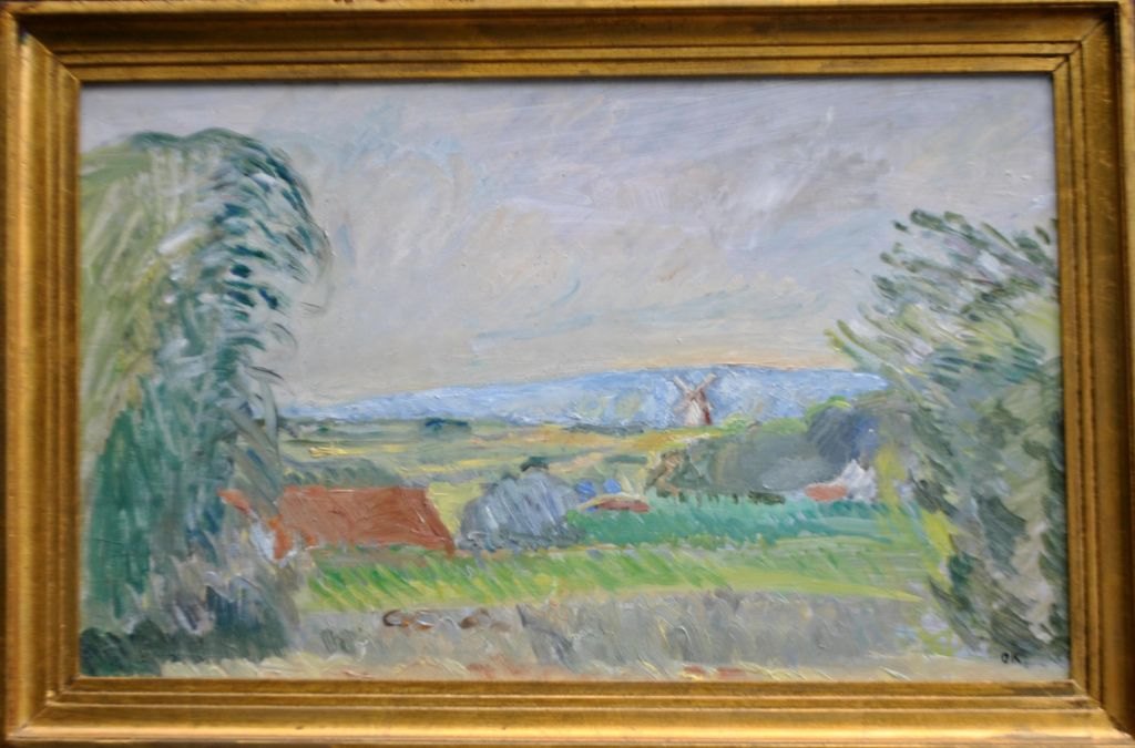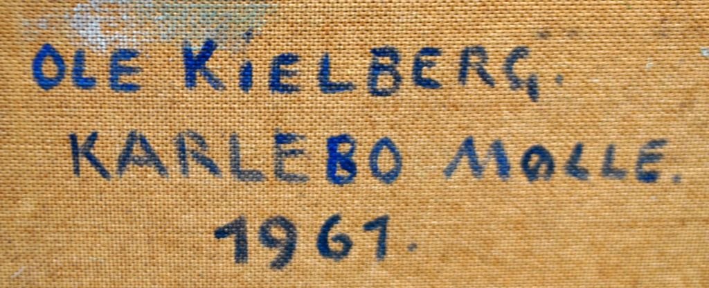 Kielberg, Ole (1911 - 1985) Denmark: Karlebo Mølle, 1961. Oil on masonite. Signed: OK. Signed on the back: Ole Kielberg Karlebo Mølle 1961. 38 x 60 cm.