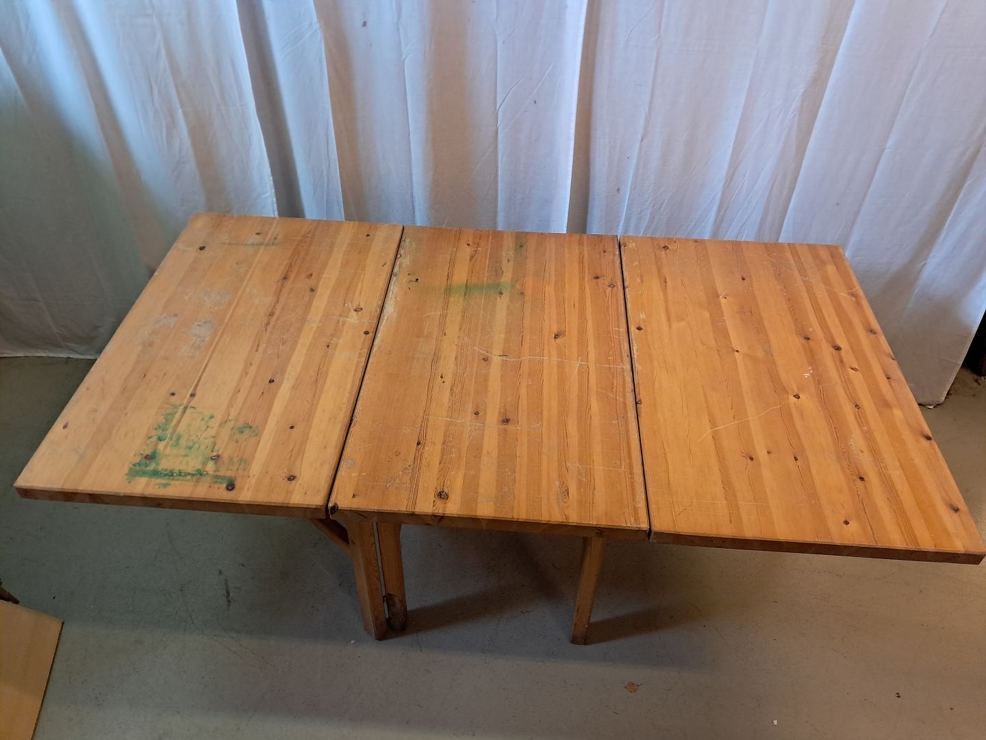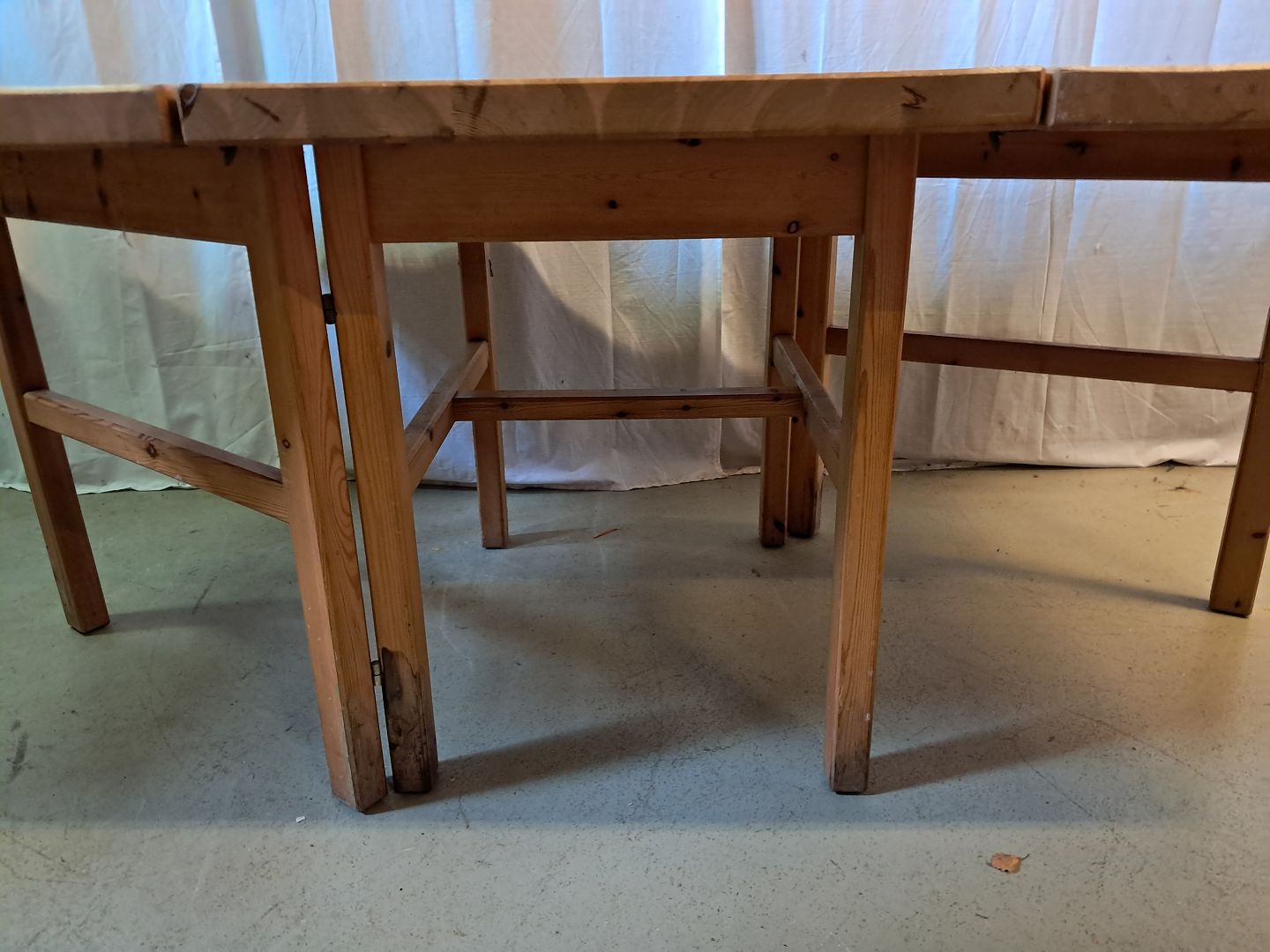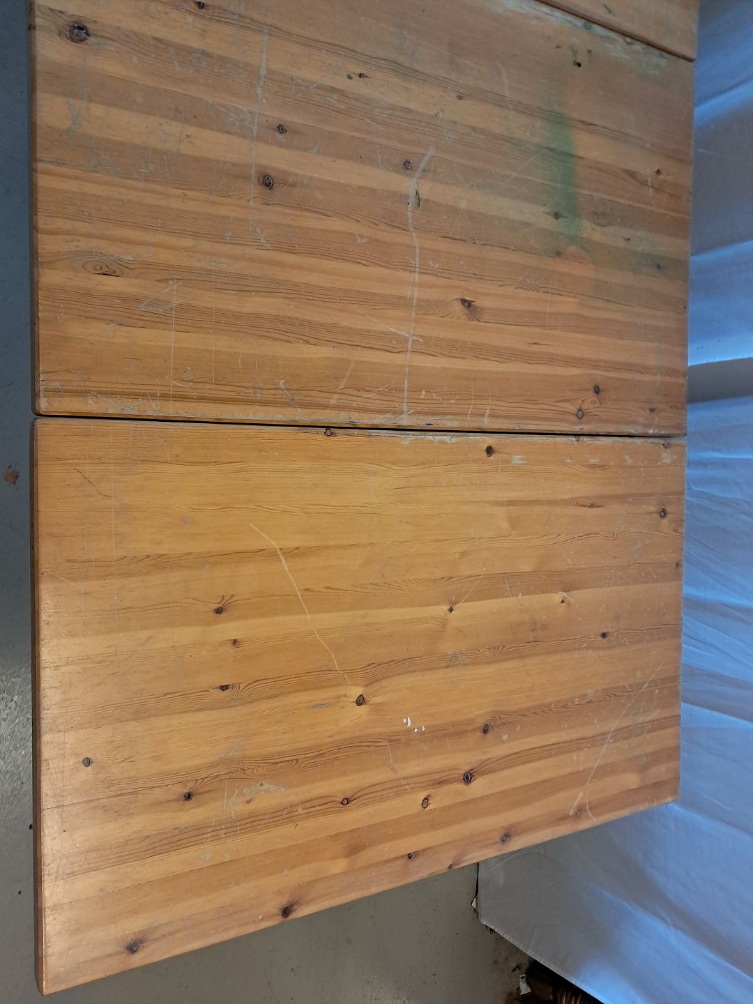 Text available in Danish: Bord i massivt fyrretræ, fra 1980erne.