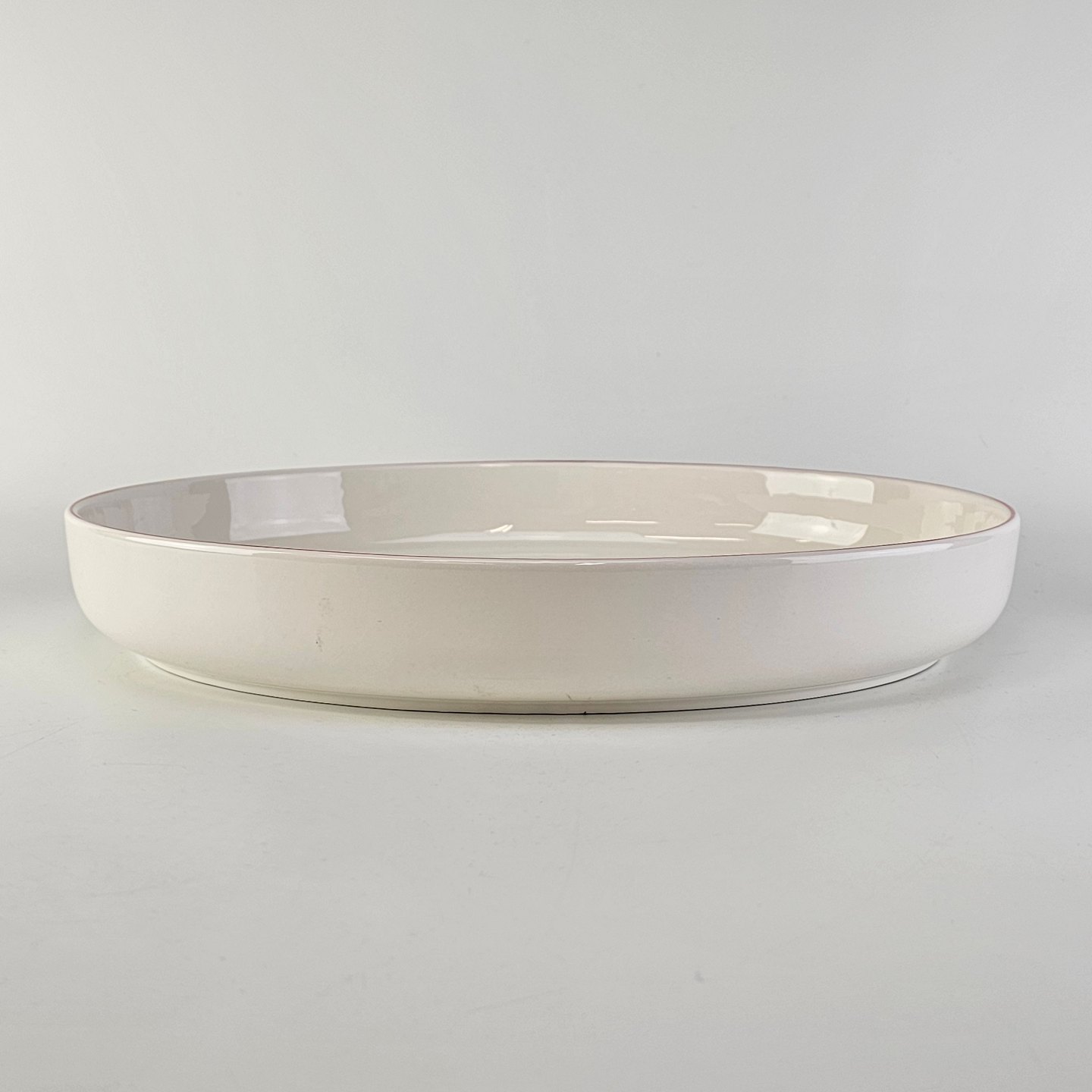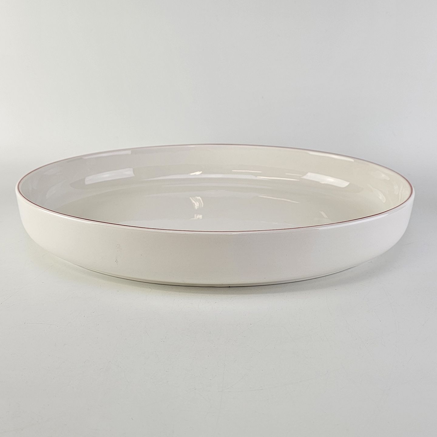 Stort ovalt fad i fajance fra stellet 4 All Seasons med rød kant