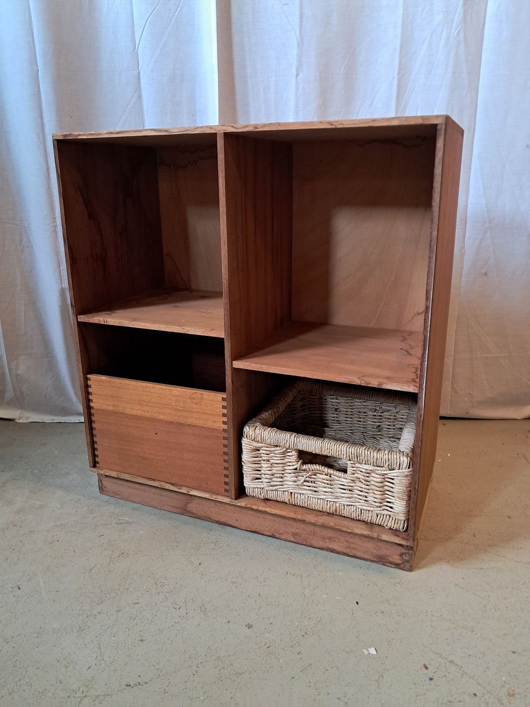 Der medfølger mahogni-kasse og kurv.