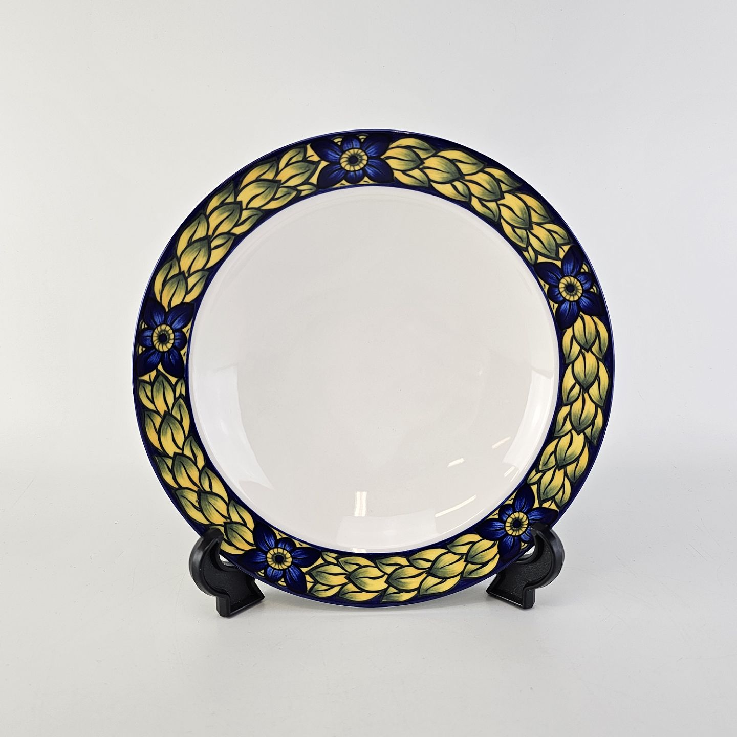 Blue Pheasant er fremstillet i glat lys fajance med motiv af en fasan med blå og gule farver. Kanterne er dekoreret med gule kornakse og blå blomster