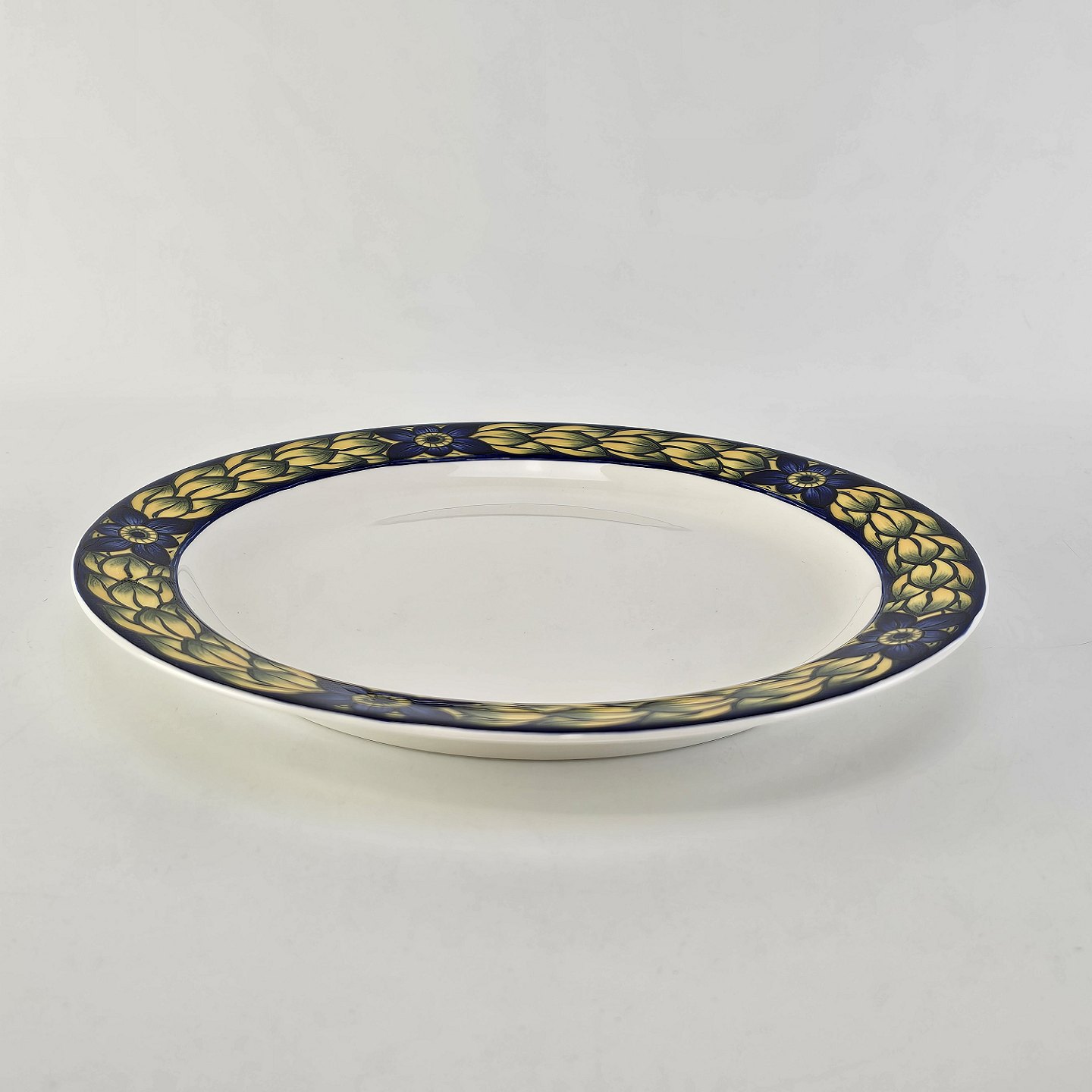Blue Pheasant er fremstillet i glat lys fajance med motiv af en fasan med blå og gule farver. Kanterne er dekoreret med gule kornakse og blå blomster