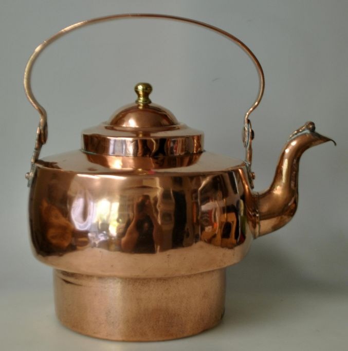 Copper kettle, A. Brandt, 19th century. With handle, lid and spout. Stamped. H: 21 cm. H. incl. handle: 26 cm. Dia: 21 cm.