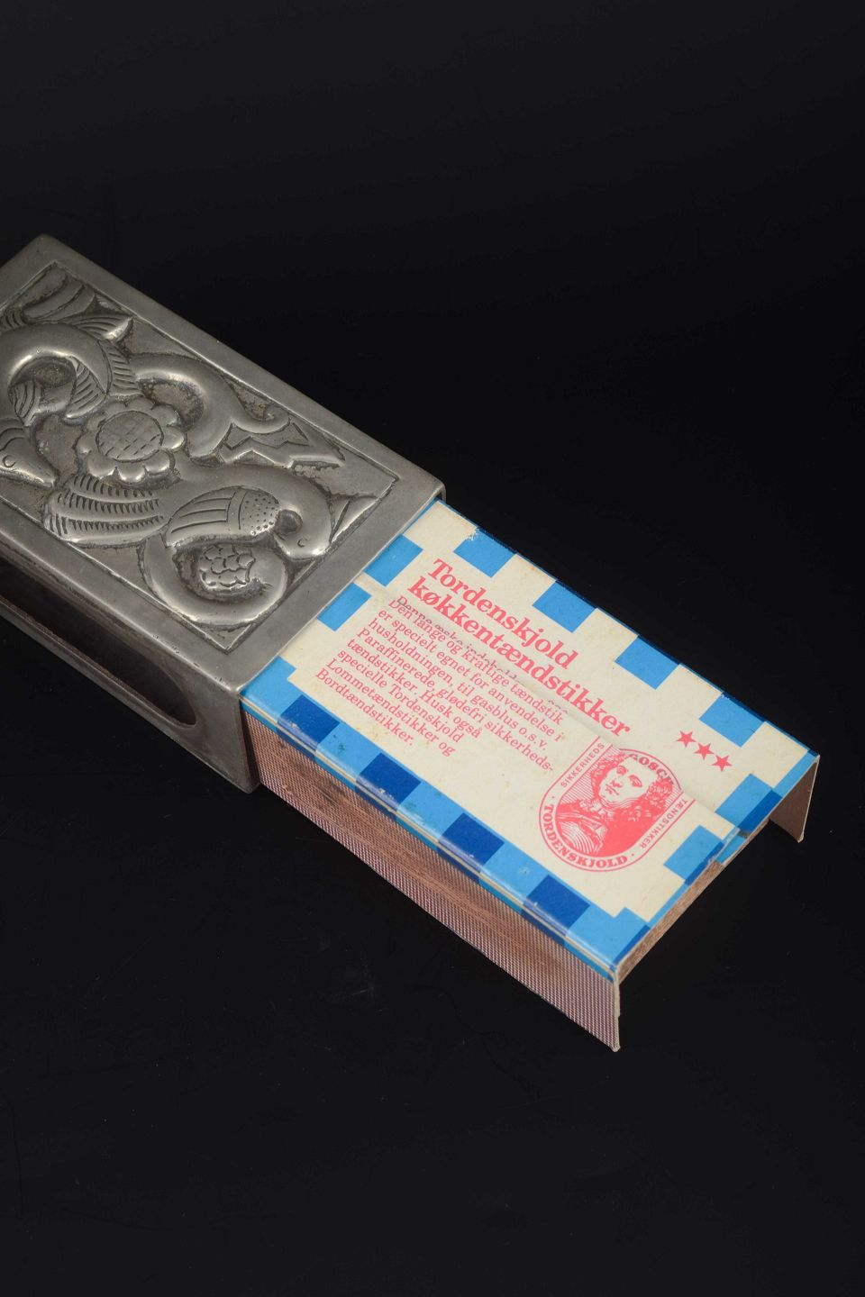Vase model 2352 and matchbox holder in pewter, 1930s–40s.