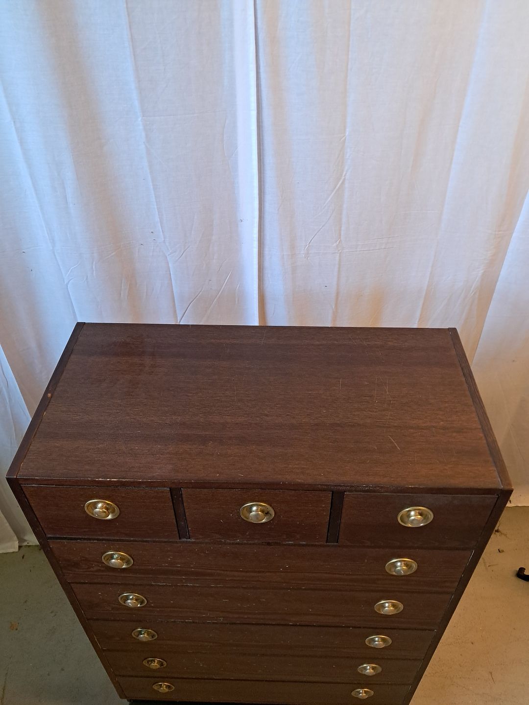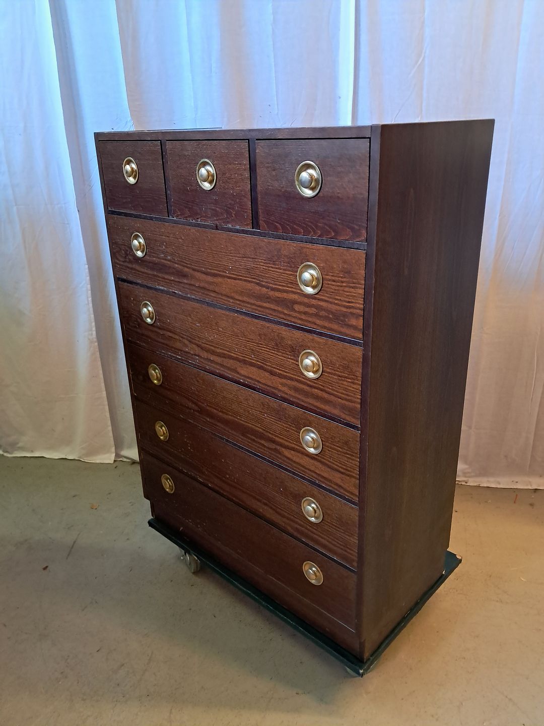 Kommode i fineret og bejdset fyrretræ, fra 1980erne.