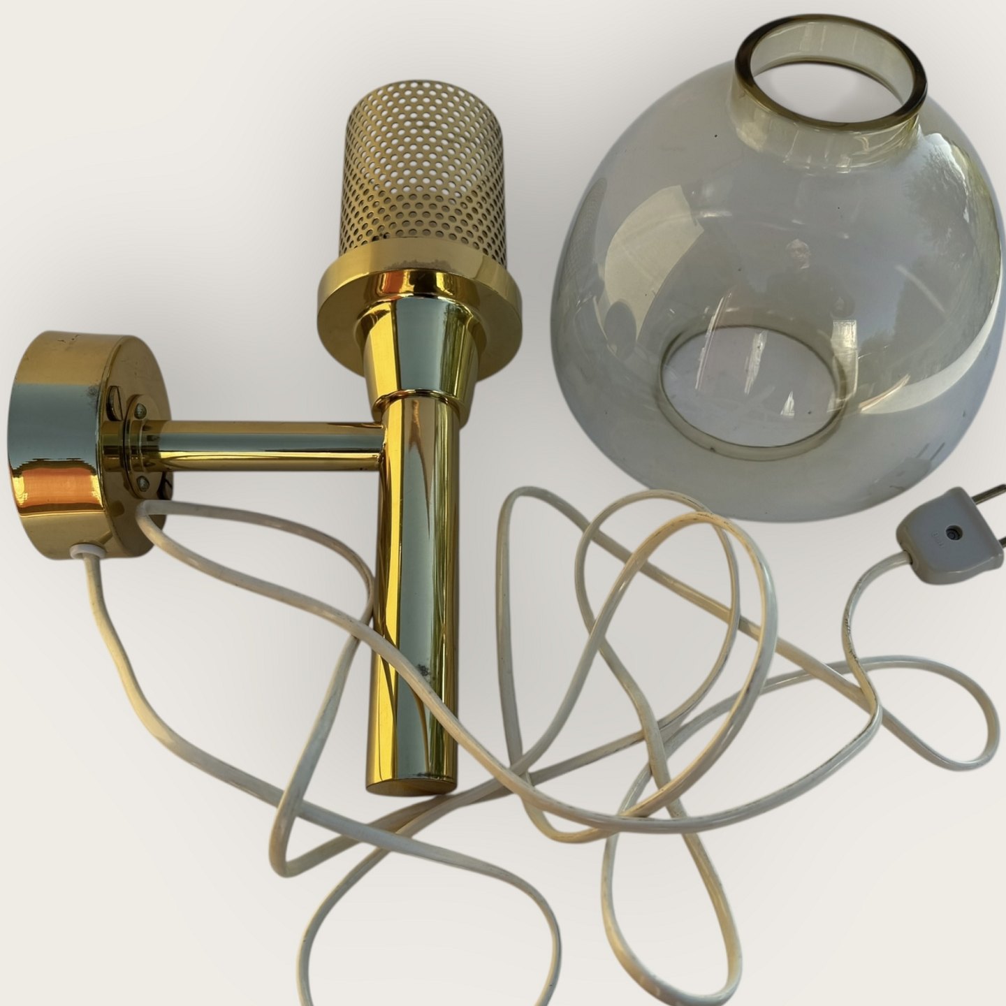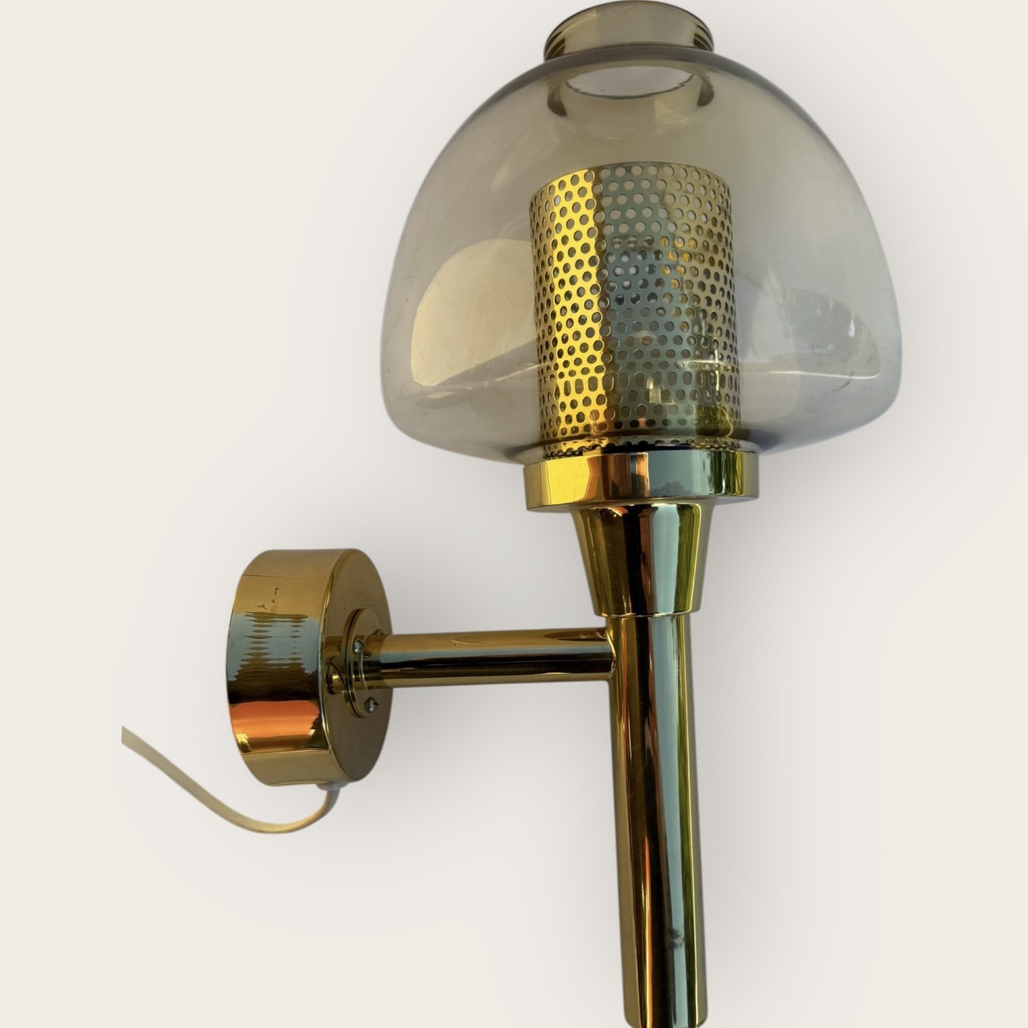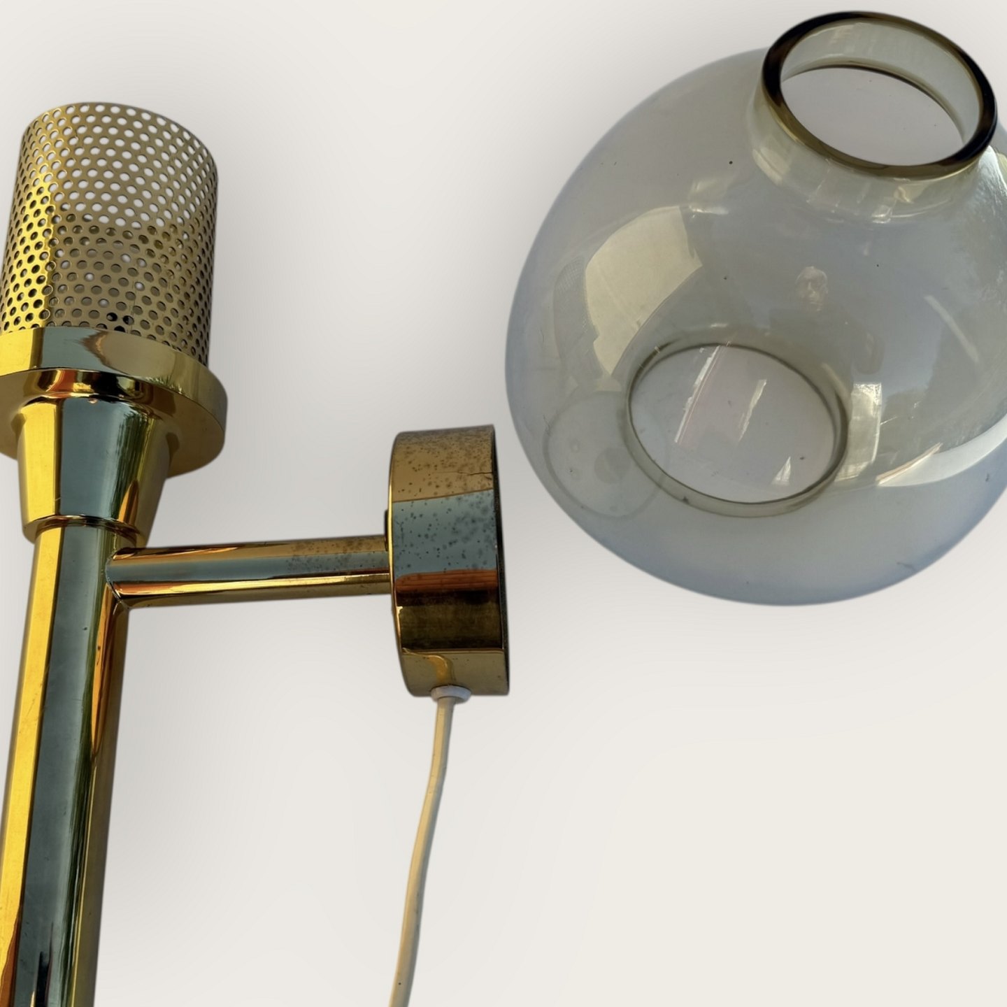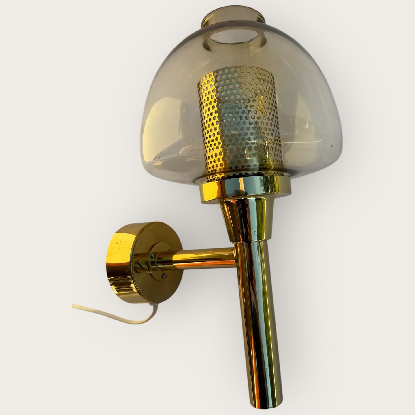 Hans Agne Jakobsson, # 314, wall lamp, brass and glass, Height approx. 32cm, very small crack/patination on the wall bracket (see photo), otherwise in very good condition.
