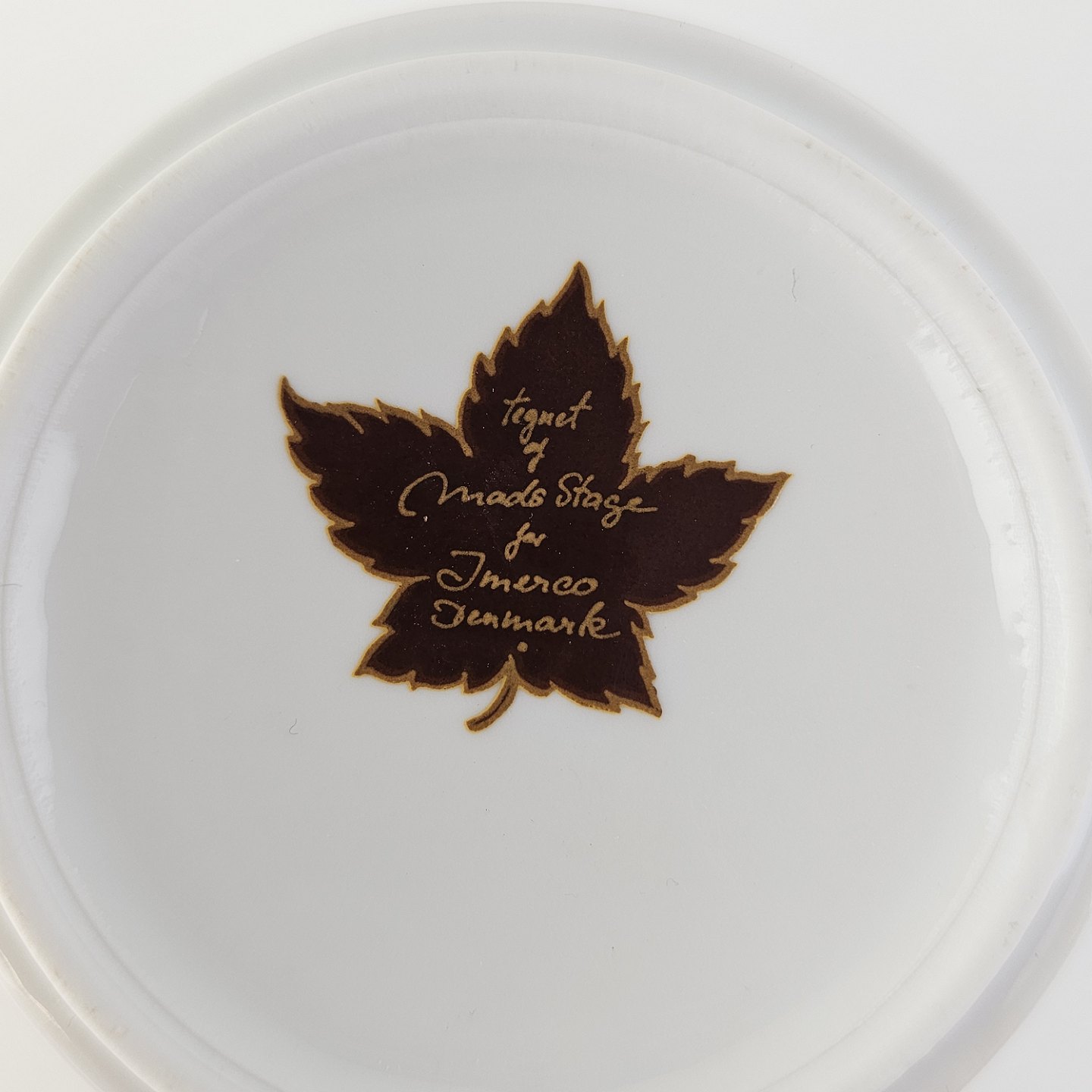 Text available in Danish: Årskrus i porcelæn fra Jagtstellet med fuglemotiver tegnet af Mads Stage for Imerco